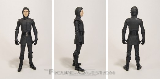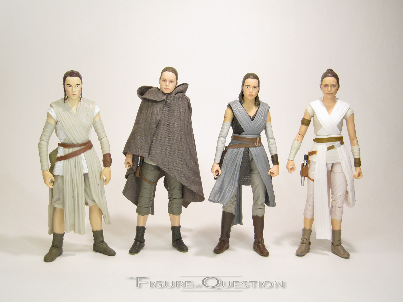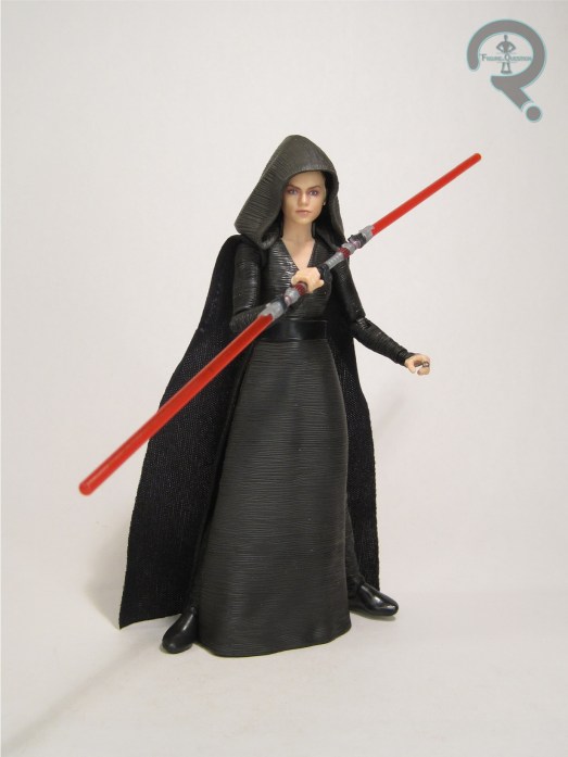 Dark Side Vision Rey is part of Phase IV of Star Wars: The Black Series, and was included in the line’s third assortment, alongside the three Mandalorian-inspired figures I looked at earlier in the week. She’s figure 01 in the Rise sub-set of the line, which is, so far, made up only of this figure. Sure, we can get a second Rey, but a proper Rise version of Poe? That’s just too much to ask for, right? Totally ridiculous! …Okay, sorry, I’m not bitter or anything. I promise. The figure stands just shy of 6 inches tall and she has 28 points of articulation…in theory. Unfortunately, most of the figure’s leg articulation ends up more or less useless, due to the nature of how the figure’s skirt piece is designed. For some reason, they opted to go for a more solid rubber construction for that piece, while using a cloth piece for her cape. Why? Not a clue. Personally, I’d have probably swapped those two. But I’m not a toy designer, so maybe there are factors I’m not privy to. Dark Rey’s sculpt is generally okay, but not really anything amazing. The head’s got a strong Daisy Ridley likeness, and might be a re-use of the standard Rise version, but it’s hard to tell. It’s good piece regardless. The hood that sits on top of it’s not so great. I mean, I guess the hood itself isn’t awful. The shaping and the texturing are certainly nice. However, much like the Rise Kylo, the hood floats above the head, which looks goofy. It’s not as bad as Kylo, mind you, and changing the posing on her head can help, but generally it would look much better if it sat just a touch lower. The rest of the sculpt isn’t bad. Her proportions match with the standard Rey, and the texturing on the robes is consistent with the strong work on the hood. Rey’s paint isn’t very involved, since it’s mostly just black plastic here. The face printing does a nice job with the shadows on the eyes, so that’s cool. The hair line’s not so great on my figure, but it’s at least harder to see that due to the hood. Dark Rey’s only accessory is at least a good one: she gets the distinctive hinged double-bladed saber from the sequence. It’s an odd piece, and she never really looks natural holding it, because the whole design is kind of awkward. However, it’s certainly unique, and it’s about the only thing I can think of that it would make sense to give her, so kudos to Hasbro there.