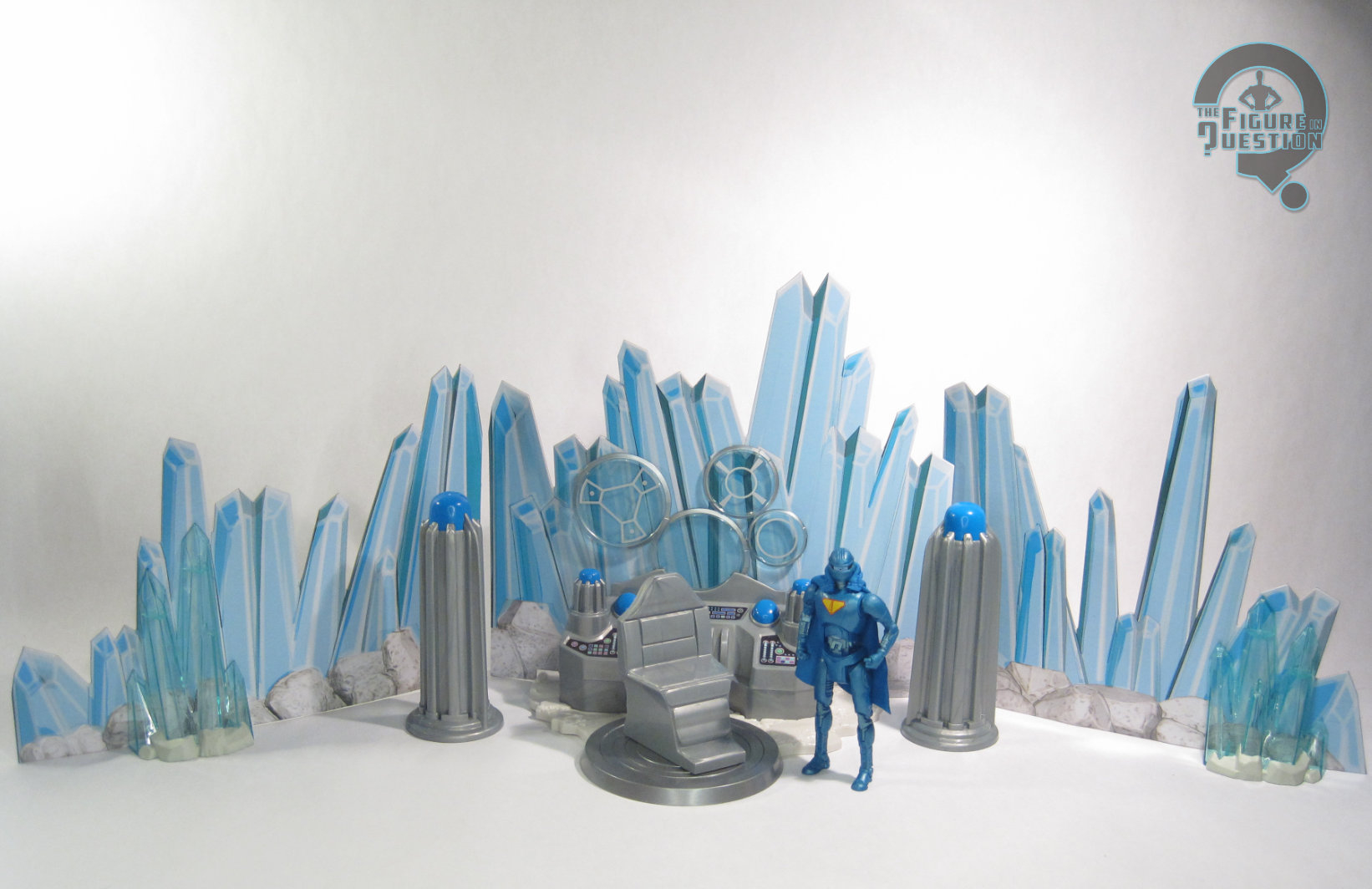 The Fortress of Solitude Playset is part of the Superman movie tie-in portion of McFarlane’s Super Powers line. There are two different versions of the set available: a standard release and a McFarlane-exclusive Gold Label release that includes an exclusive Superman Robot figure. The one seen here is the Gold Label version.