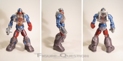 are very cleanly detailed, and I love the working jaw and turning gears inside the torso. I also really dig the little heart sculpted around the central gear, in reference to his mini comic appearance. The arms are fine, but the elbows are notably rather restricted in their motion, which was a recurring issue for the line. QC was unfortunately a notable issue for this guy. Thankfully, mine isn’t plagued by the torso cracking, but there was no avoiding the reversed shoulders. They aren’t the end of the world, but it’s pretty obvious they’re not the way they’re supposed to be. The color work was actually pretty nice for this guy; he’s really bright and bold, so it makes him very eye-catching. He’s also got a wash on the silver sections, to help bring out the sculpted details a little better. Roboto was packed with his classic claw, axe, and blaster attachments, as well as a standard hand. The weapons are a bit soft and prone to warping, but generally they look okay, and the standard hand is a nice addition.