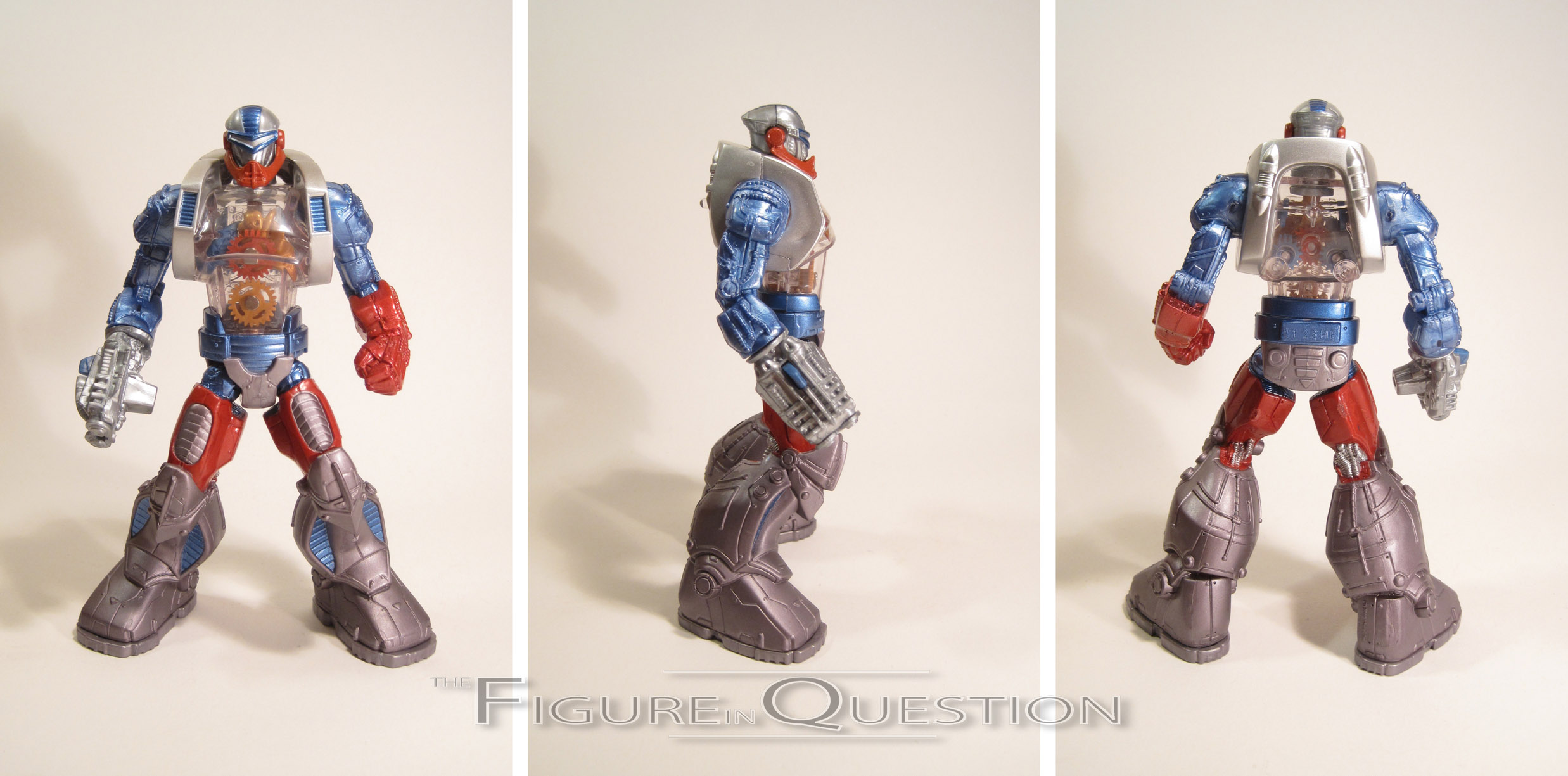 Roboto was the October release for Masters of the Universe Classics 2010 run of figures, making him the tenth standard figure of the line’s third year. By 2010, the line was pretty much in full-swing, and they’d gotten the subscriptions set up, so Roboto was around for a leisurely 2 hours and some change before selling out, which I guess was pretty nice. The figure stands 7 inches tall and he has 23 points of articulation. While he loses the mid-torso joint that most figures in the line sported, he does gain an articulated jaw, so it winds up as an even trade. Roboto’s sculpt was a mix of new and re-used, which was pretty par for the course. Like his vintage counterpart, he shares his legs with Trap-Jaw (who also shared his legs with Optikk, all three the same year), but his upper half is all-new. Roboto was very definitely based directly on his vintage counterpart, rather than his 200x version. At the time, it was the most sensible choice. There was an alternate head made available later, but that wasn’t present with the initial release. The sculpt does a pretty respectable job of capturing that vintage look. The head and torso