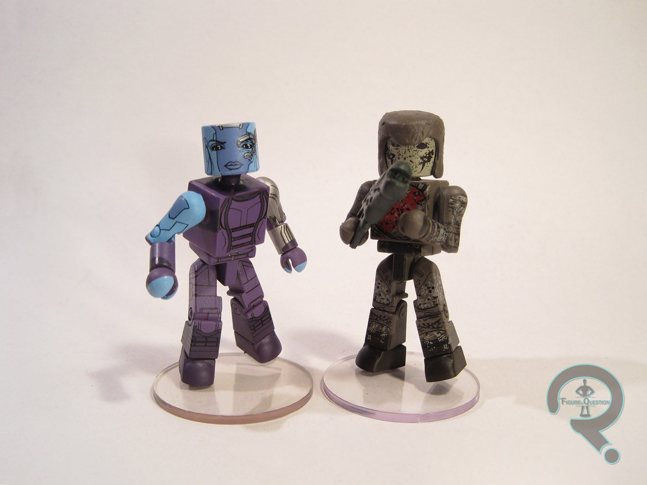 At long last, all of the Guardians of the Galaxy Minimates are here. And, as of today’s review, I’ll have reviewed all of them. I previously reviewed Yondu, one of the two characters from the movie who can only be found in this lineup. Today, I’ll be looking at the other character, Nebula, as well as her pack mate the Sakaar Trooper.