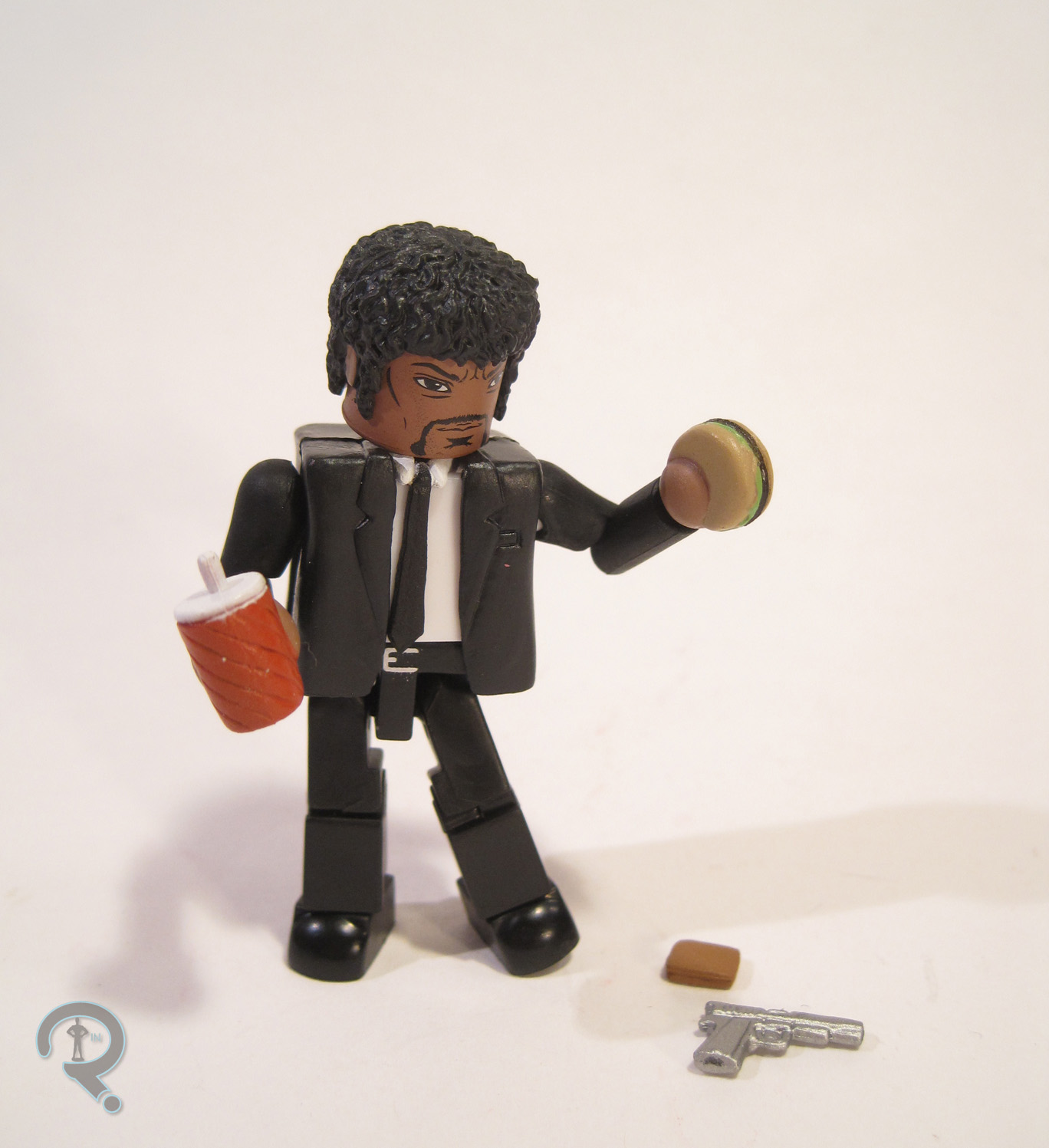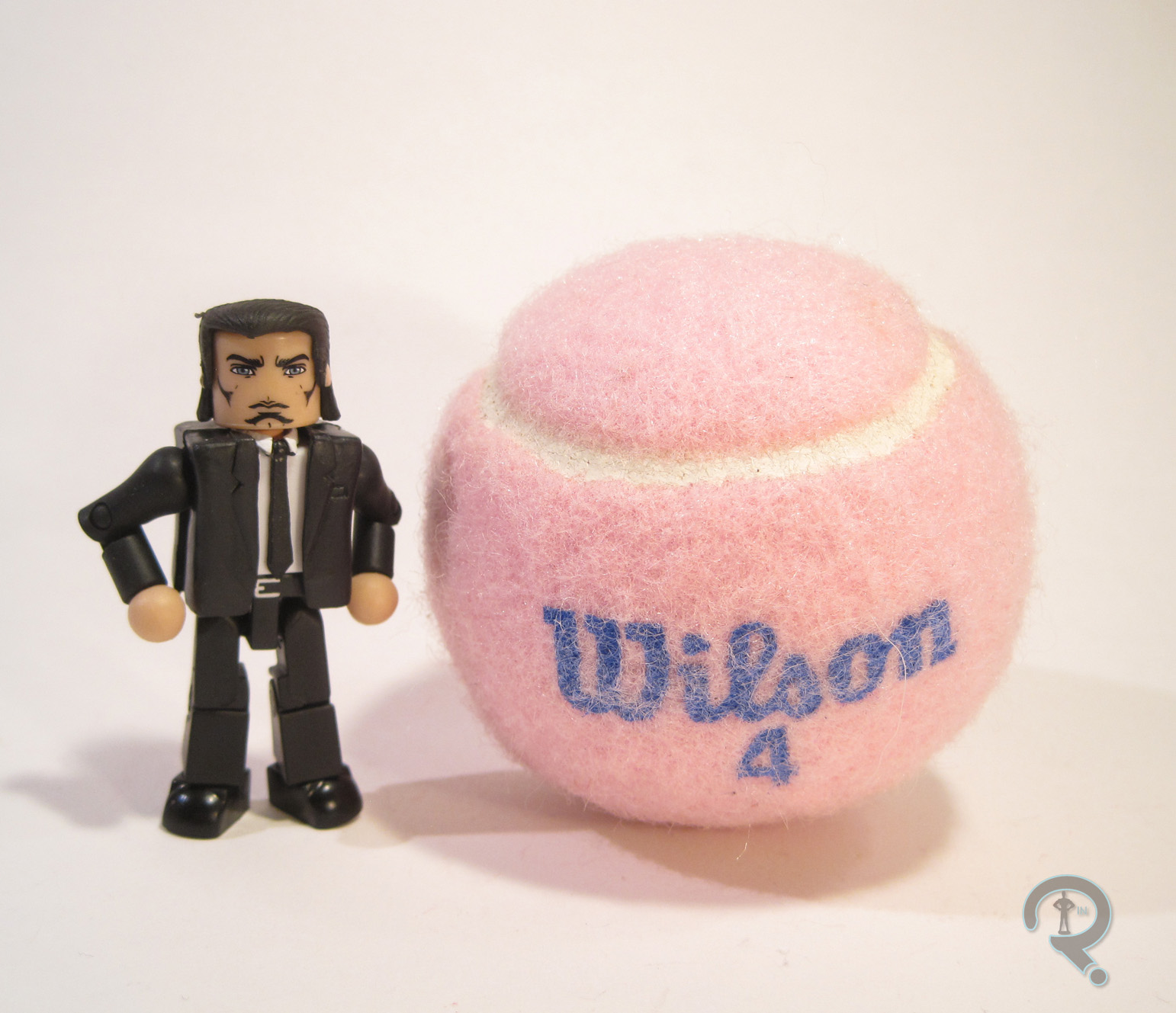 Ultron looks a little….I don’t want to say puffy… Yeah, so this is Ultron in his Vibranium infused body from the film’s big climactic battle, which is ever so slightly different from his main look for the rest of the movie. The figure is about 2 ½ inches tall and has 14 points of articulation. Ultron uses the base Minimate body, with non-standard pieces for the head, hands, and feet, as well as add-ons for the shoulders and torso extension. All of these pieces are re-used from prior figures; the head is from Ultron Prime, the hands originated on DC Minimates’ Cheetah, the feet are from Nightcrawler, and the add-ons are pieces we’ve seen on numerous prior ‘mates. It’s definitely a hodge-podge of pieces, but the end result actually looks pretty sleek. Also, he amends the issue of size that plagued Ultron Prime; he’s not huge, but he’s certainly got a level of imposing-ness to him. The paintwork on this figure is superb. The silver is nice and cleanly applied, the detail lines are nice and sharp, and he does a pretty great job of replicating the film design. Everything looks really great, and he’s even got a full set of detail lines on the normal arms under the bulked up shoulders. Ultron includes a spare set of normal hands and feet painted silver, for those that don’t want the more unique pieces, as well as a clear display stand.