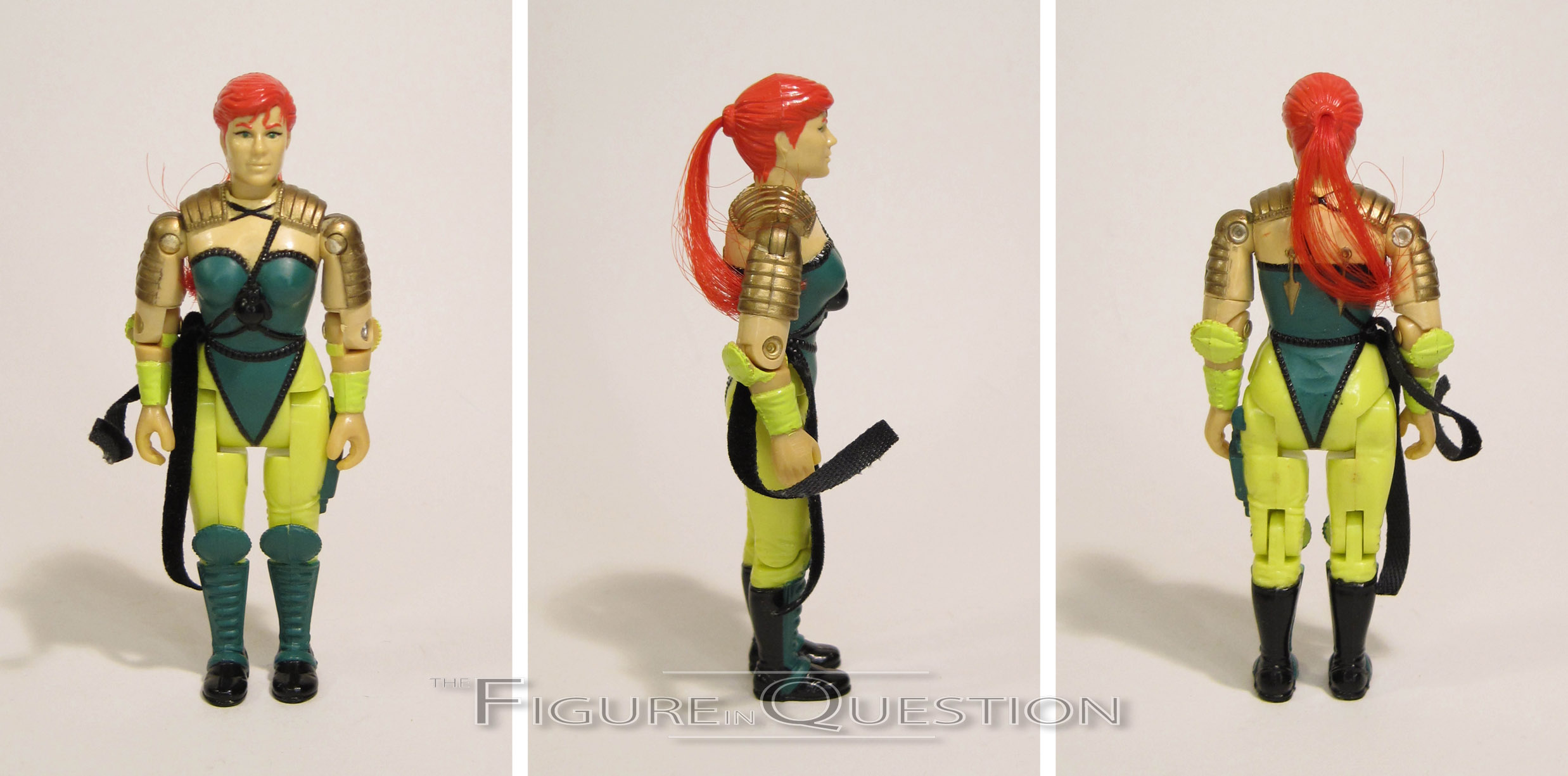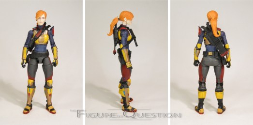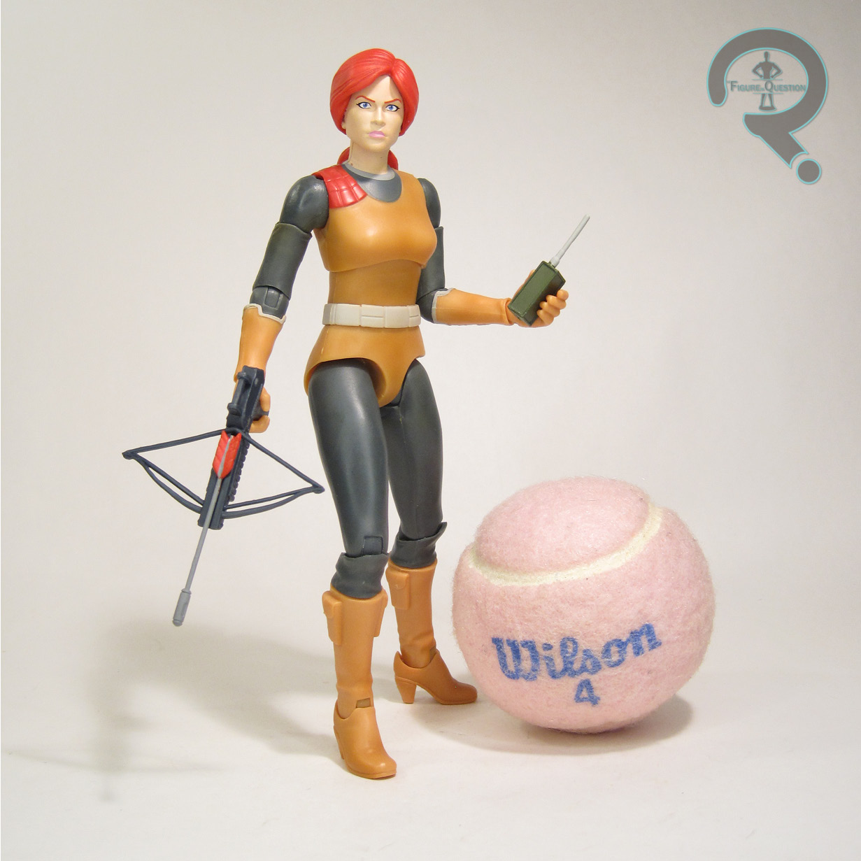 “A brilliant mind, outstanding martial arts skills, and lethal accuracy with her trademark crossbow – that’s Scarlett. The G.I. Joe team’s counter-intelligence expert has the cerebral savvy to get inside the mind of her enemies and design a plot that’ll outsmart them at their own game. She also has the combat skills to take on a squad of Cobra troopers and be the sole person left standing when the fighting’s over. She can make a HALO dive into hostile territory in the dead of night, then enter a heavily guarded Cobra missile silo and take it over as one-half of a two-person unit, and not even break a sweat. That’s skill. That’s training. That’s Scarlett.”
