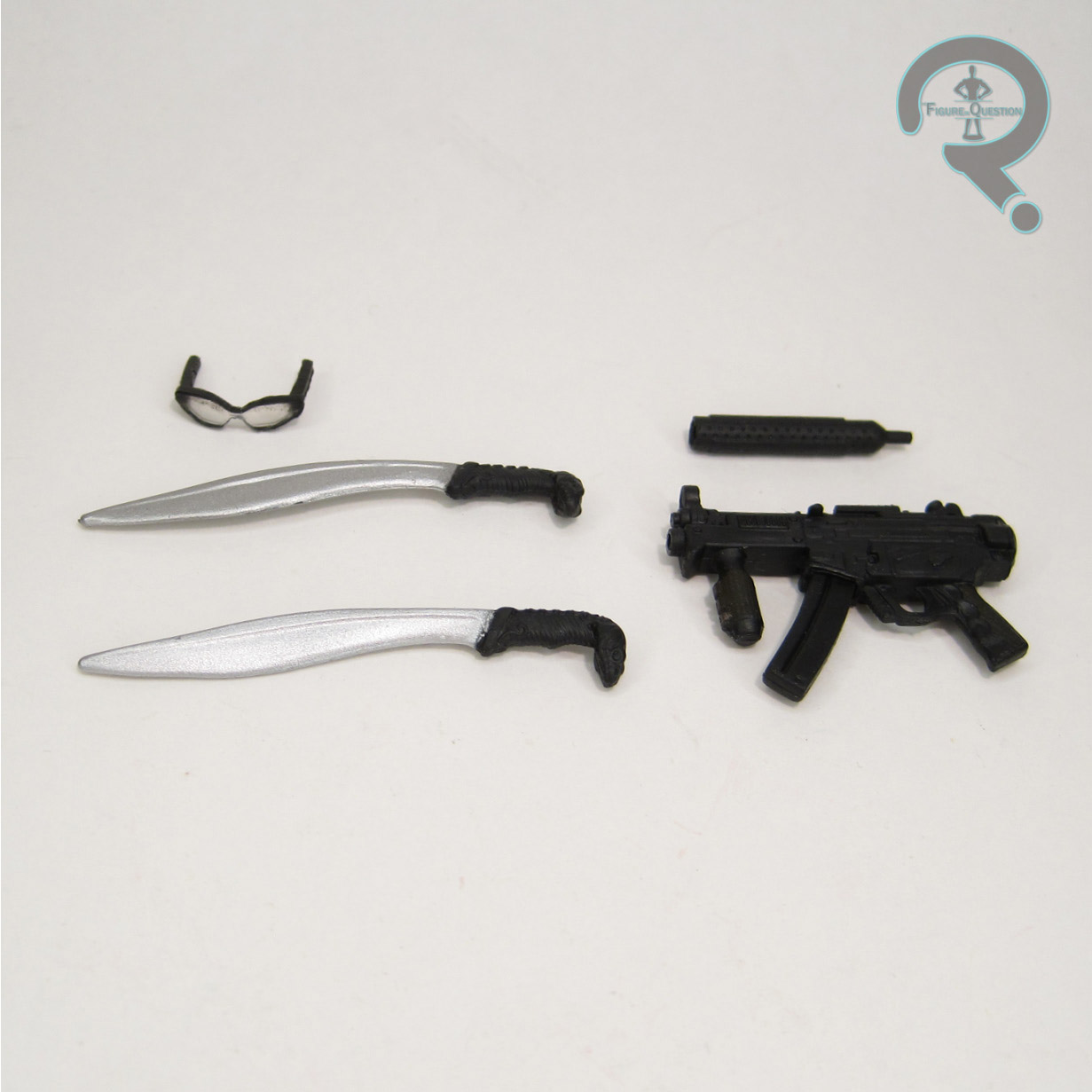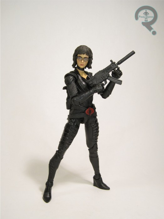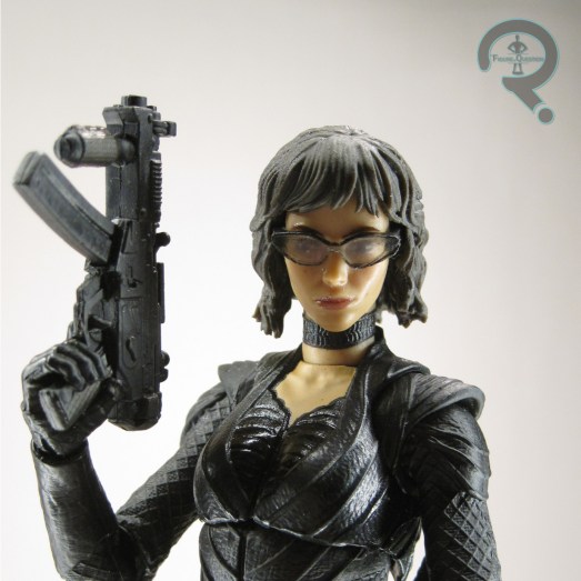 movie, for the majority of her screen time, no less. It’s a slight tweak on the usual Baroness get-up, but the important parts are certainly there, and the general feel of the character is captured pretty well. The sculpt captures the design nicely, as well as sporting a decent likeness of Corbero. I quite like the texture work that is present in the uniform, an after the standard Baroness’s glasses were permanently attached, the removable ones on this figure are pretty cool. Baroness’s paint work is pretty basic for the most part. The face is the most complex part, and the printing gives it a nice lifelike quality. Everything else is pretty cleanly handled. Baroness is packed with an MP5k (a rare actual gun for the line), complete with removable suppressor and magazine, as well as two rather large knives. Not a bad assortment at all.