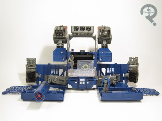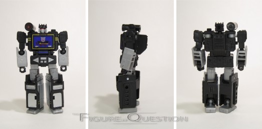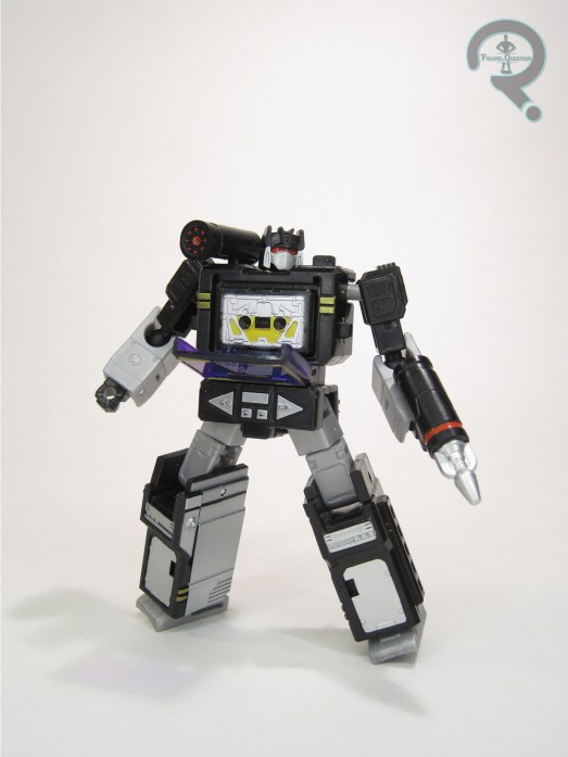 mold, that means this guy’s alt-mode is a cassette player again, which is how Soundwave do at his Soundwave best. As with prior instances, it’s good when viewed from the front, but a bit spottier at the back. This Soundwave’s color work isn’t drastically different from the Walmart release, but it tweaks things every so slightly still. It adds back in the missing red details from that release, and also makes the other colors match-