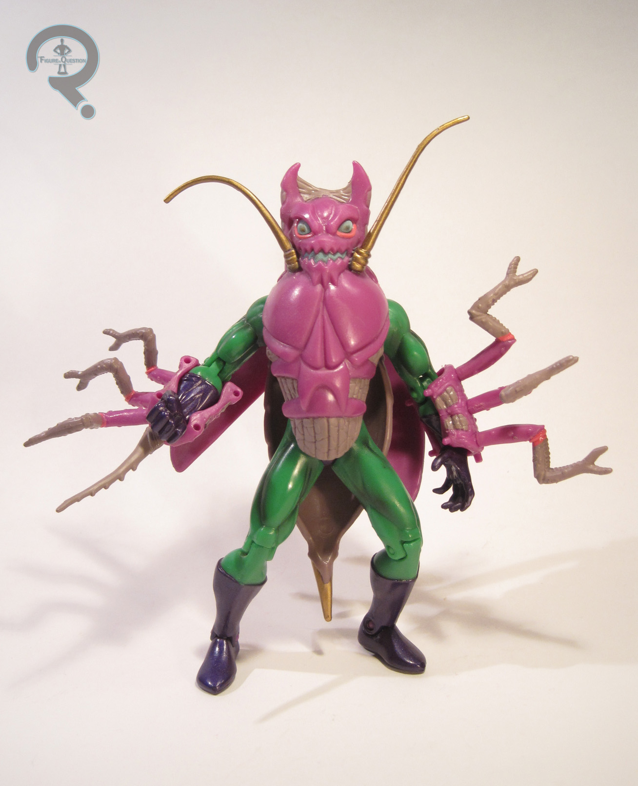This Punisher was part of the “Monster Mayhem” set from Toy Biz’s 5-inch Spider-Man line. The set was initially a BJ’s exclusive, but it later showed up at KB Toys as well. All the figures in the set were loosely based around the “Man-Spider” arc from Spider-Man: The Animated Series. This figure stands 5 inches tall and has 9 points of articulation. Structurally, this figure is the same as the last Punisher I looked at. It’s a fairly sensible re-use, since that figure was a fairly decent rendition of the animated design. The only downside to the sculpt is that it lacks any sculpted indication of a headband, despite there being one painted on. Speaking of the paint, it’s kind of the figure’s main selling point. The prior Punisher was based on his classic black and white look. When they were translating Punisher to animation, it was decided that black and white would be too hard to animate. So, he was given a slightly altered version of his War Journal look from the ‘90s, and that’s what this figure represents. With the exception of the clearly just painted on headband, the paint on Punisher isn’t bad, aside from the obvious wear and tear present on my figure. Punisher included a cloth trenchcoat (to complete the cartoon look) and a knife.