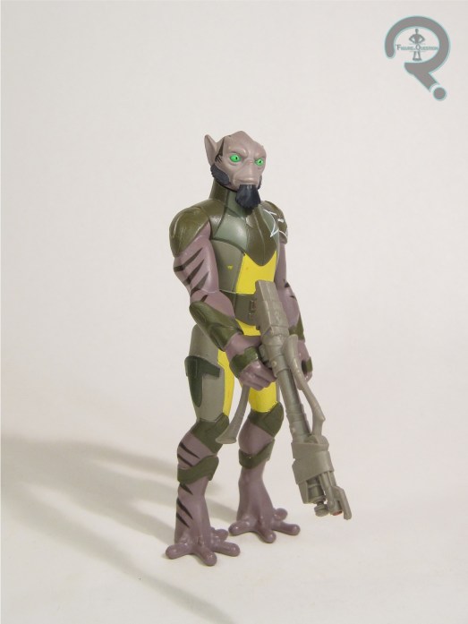 sculpt, which…well, it’s honestly not fair to judge it that harshly. It’s not a bad sculpt on its own merits; there’s more than a passing resemblance to McGreggor, and he’s not terribly far off from his look in the show. He’s a touch too clean and put together, I think is the real issue. Still, given that this one predates the other, I can’t knock it. The major change-up for this figure is the color scheme, specifically the shirt, which is now a lovely shade of blue. It looks quite spiffy, and makes him suitably different from the main release. To further differentiate him, he also gets a new cloak piece, as well as an all-new back-pack, both based on his stuff from the scenes with this look. And, he’s also still sporting his blaster and lightsaber, just like the other one.