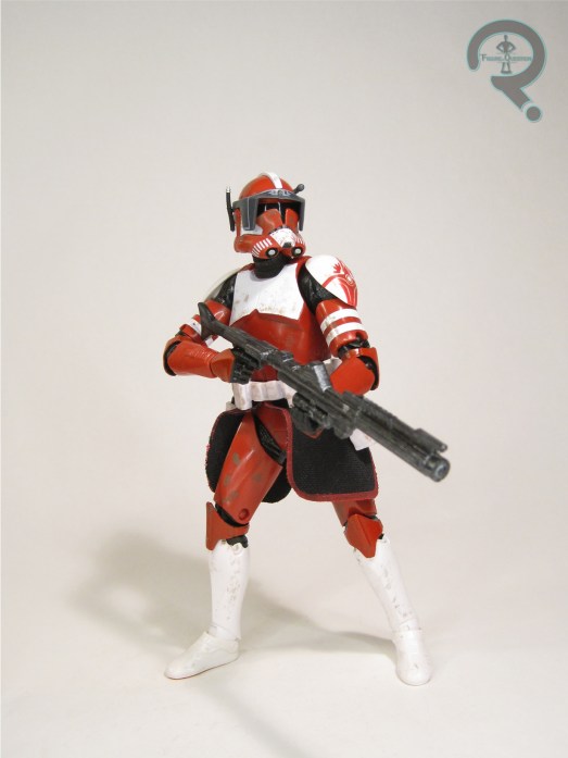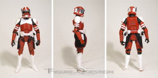 Hunter is the first figure in the Bad Batch-based sub-set of Black Series Phase IV, and is part of the fourth Black Series assortment since the re-work. He’s the first of the three Bad Batch figures in this particular round. The figure stands just over 6 inches all and he has 27 points of articulation. Hunter’s articulation scheme is very much the same as that of the recently re-vamped Clone Trooper figure, which is rather fitting, and also a solid basis for articulation, since that figure moved pretty well. His sculpt is largely a new piece (though a fair bit of it is shared with his assortment-mate Crosshair), but he does share his feet with the standard Clone trooper. Otherwise, it’s new, and it’s pretty strong. I did notice that his armor design does stay a little closer to the animation styling that other Clone Wars clones, but with no real-word-equivalent armor design for him, I guess that’s kind of a little more expected. There are at least some extra smaller details added throughout the armor, in order to make it a little more lived-in, so he’s got some scratches and