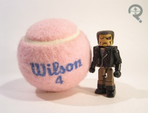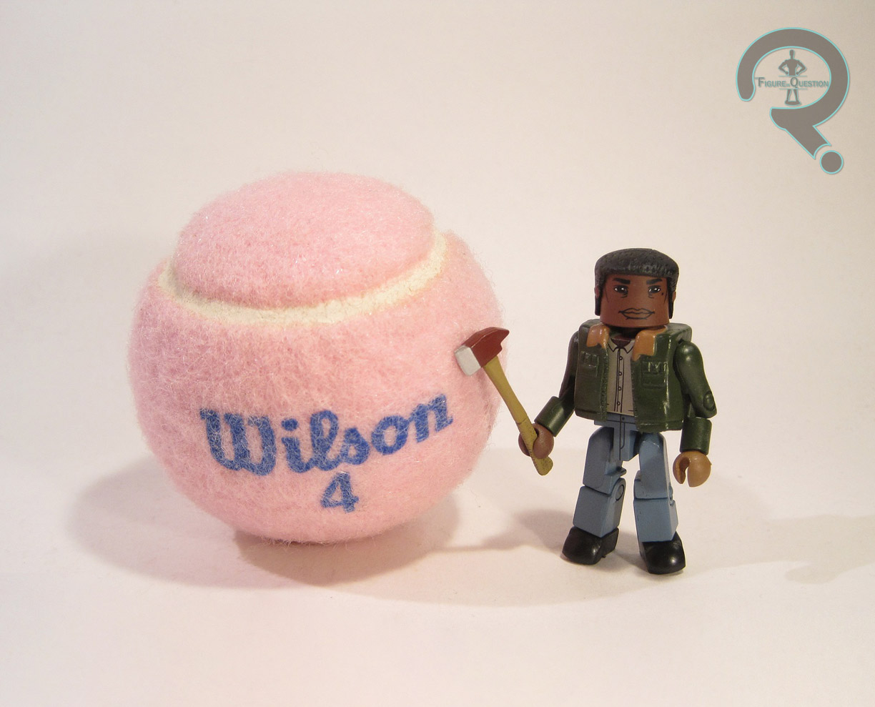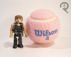 Poor Dyson. This guy really got the short end of the stick, didn’t he? Probably one of the most genuinely likeable people in the movie, and he gets his house blown up, his family attacked, he gets shot (a bunch) and then he dies. But, hey, for what it’s worth, he’s the only figure in this set that’s actually from the attack on Cyberdyne. So there! Dyson is about 2 ½ inches in height and he has 14 points of articulation. He’s got the same body as the others, with add-ons for the hair and coat. The hair is new to Dyson, and it’s a pretty good approximation of hos look from the movie. The coat actually began its life on a cancelled Colonel Tigh Minimate from the BSG line, before making it to an actual release with Miles here. It’s a nice, standard coat piece. It’s well sculpted and rather versatile, so it’s nice that it actually got released somewhere. Dyson probably has my favorite paint work of the set. He has a spot on likeness of actor Joe Morton (great if you want to do any Eureka Minimates), but my favorite part is the detailing on the shirt. With the jacket on, it looks like just a regular button down shirt, but remove the jacket and there’s a fully detailed bandaged gunshot wound, complete with slightly dried blood. It’s a fantastic touch, and something that could have been easily overlooked. Dyson includes a fire axe, which is definitely important to the character and is my favorite accessory in the set.