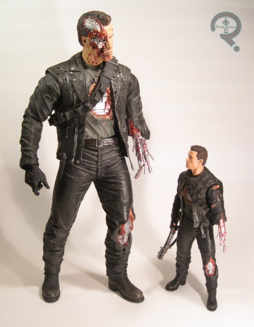 The larger figure was a Christmas present, given to me by my parents.  It was the year after I’d gotten the Hot Toys T-1000, and I was really wanting to have at least some version of the T-800 to go on the shelf with him and Sarah.  While I did eventually get the Hot Toys release when it came out (a whole three years later), this guy held me over in the mean time, and actually fit in surprisingly well with the two HT figures.  Looking back, he’s still a pretty awesome figure.  It’s too bad NECA never did any other characters to go with  him!