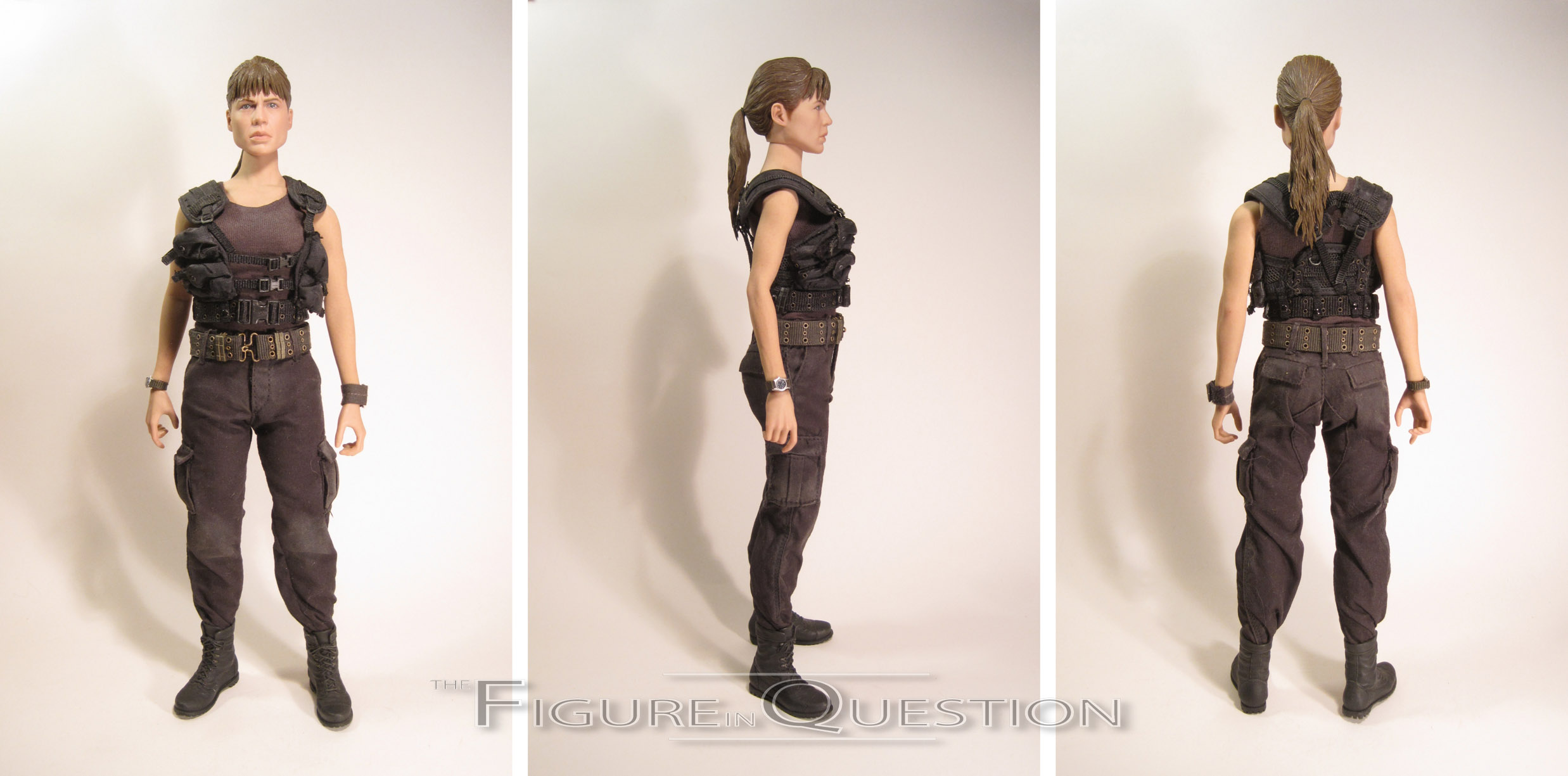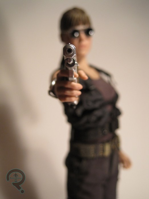 Sarah was released as figure 119 in Hot Toys’ Movie Masterpiece Series, placing her between Inglorious Basterds’ Aldo Raine and Iron Man 2’s War Machine numerically.  Not as themed as other releases, but the T2 figures were all pretty scattered.  This figure is based on Sarah’s “terminator” look from around the film’s mid-point, when she goes to kill Miles Dyson.  It’s really her most distinct look, and definitely my favorite.  Sarah stands roughly 11 inches tall and she’s got 28 points of articulation.