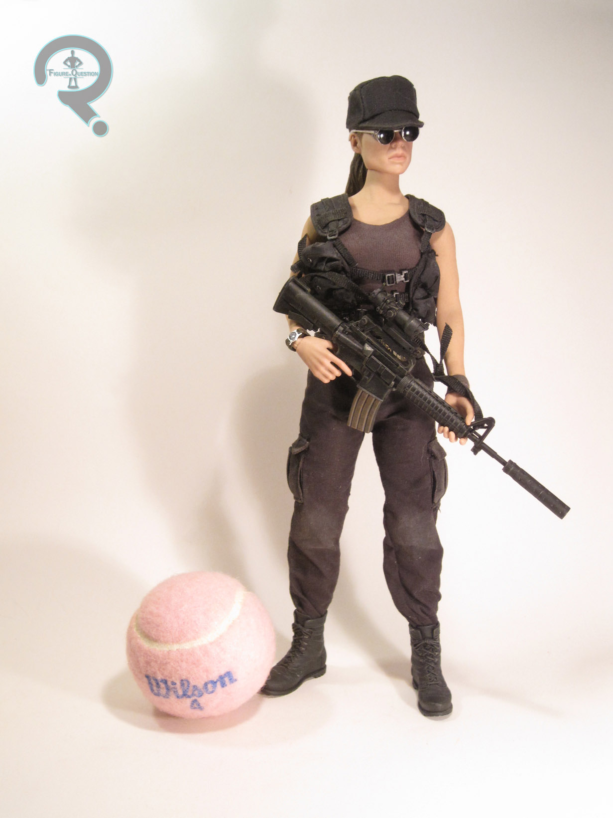 SarahConner2Sarah Connor is the second “Ultimate” figure in the Terminator 2 line. She’s a single release, though she shipped right around the same time as the second version of the Terminator Genisys T-800. The figure stands 6 ¾ inches tall and she’s got 24 points of articulation. Technically, she should be little shorter to be in scale with the T-800(Linda Hamilton’s 8 inches shorter than Arnold in real line), but she’s really not that far off. As noted in the intro, Sarah is not a re-tooling like prior Ultimate releases; she is instead an all-new sculpt, handled by Adrienne Smith. Her basic look is her black tactical gear from the mid-point to climax of the film. It’s easily the character at her most distinctive, so it’s well-chosen. The proportions on the body are pretty much spot-on, including Linda Hamiliton’s impressively toned arms. Seriously, she was jacked, and so is this figure. Her clothes are incredibly well detailed, with tremendous texturing, and just the right amount of weight. To ensure the best poseablity for the torso, the webgear is a separate (non-removable) add-on piece. It has the same great work seen on the rest of the body, and some amazing little touches, such as the unfastened buckle at the top of the vest, which looks like it’s really a separate piece. She also has a separate belt piece (also non-removable), SarahConner3complete with a sheath for her knife. Like the Ultimate T-800, Sarah includes three different heads: Ponytailed with hat and sunglasses, ponytailed without hat and sunglasses, and hair untied (once again without the hat and sunglasses). Some people have complained about not getting another head with the ponytail and sunglasses, like she’s shown on the front of the box. While it’s a shame that look isn’t represented, if we could only have three heads, these are the three I want. The hat and sunglasses head is my favorite of the three. The likeness is the best here, the hat is fantastically detailed, and while the sunglasses aren’t quite as clean as the T-800s, they still look pretty cool. The other two heads are no slouches either, doing a nice job of capturing Sarah as she progresses through the movie. Sarah’s paintwork is pretty solidly handled; all the base colors are where they should be, and there’s some nice work differentiating the blacks of the various parts of her outfit. The heads show a bit of slop around the hairlines, but the overall paint looks quite nice, and I was especially impressed by how well the eyes turned out on the two non-sunglassed heads. In addition to the extra heads, Sarah includes an m4 carbine, a colt 1911, and a knife (complete with a sculpted tassel at the end) that fits perfectly in the sheath on her belt.