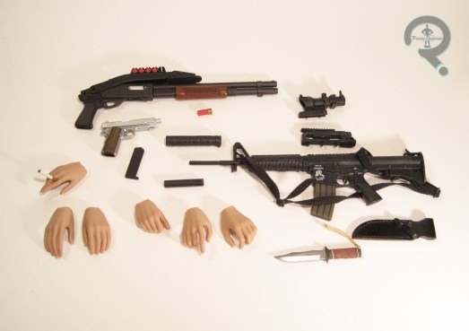 The shotgun, assault rifle, and handgun are close runners up to the glasses.  They all have a number of moving pieces and all of the details that you’d see on the full scale weapons.  The shotgun has a folding stock, as well as five removable rounds.  The assault rifle includes a removable scope, rail, and silencer, allowing for a few different looks.  The handgun has a removable clip, and the clip even has a removable bullet at the very top, which seems like it’s asking to be lost.