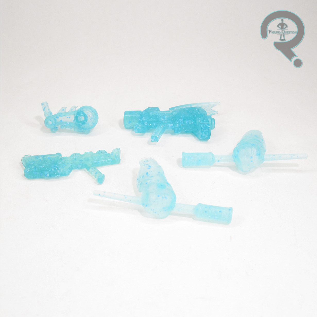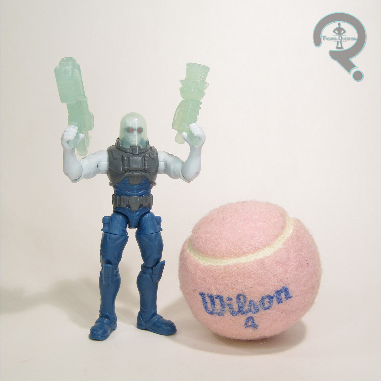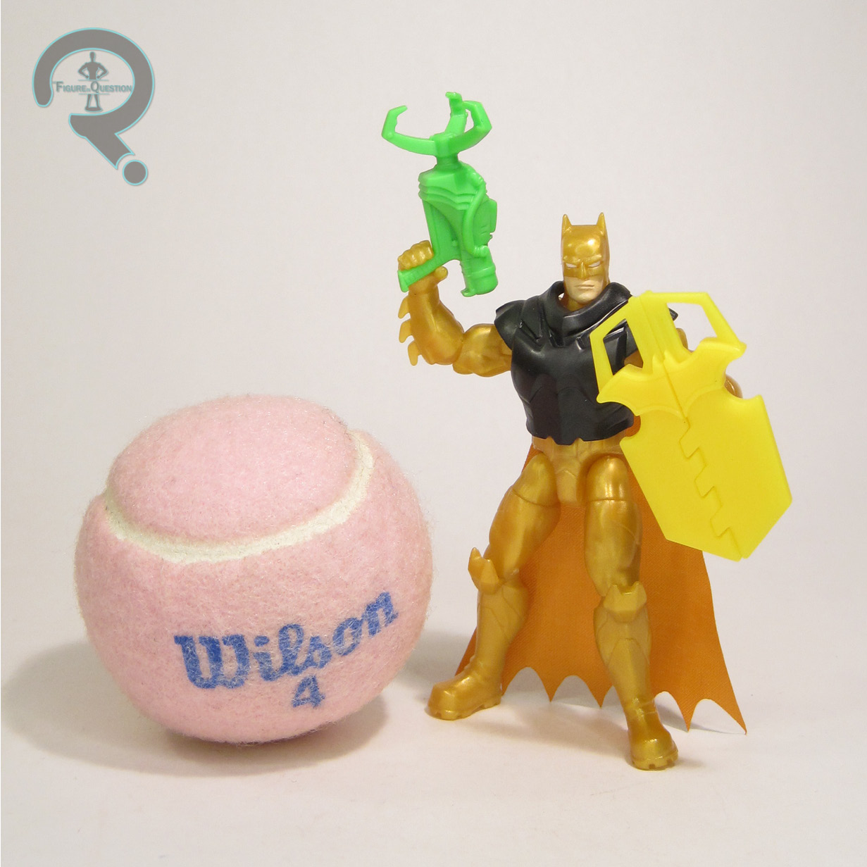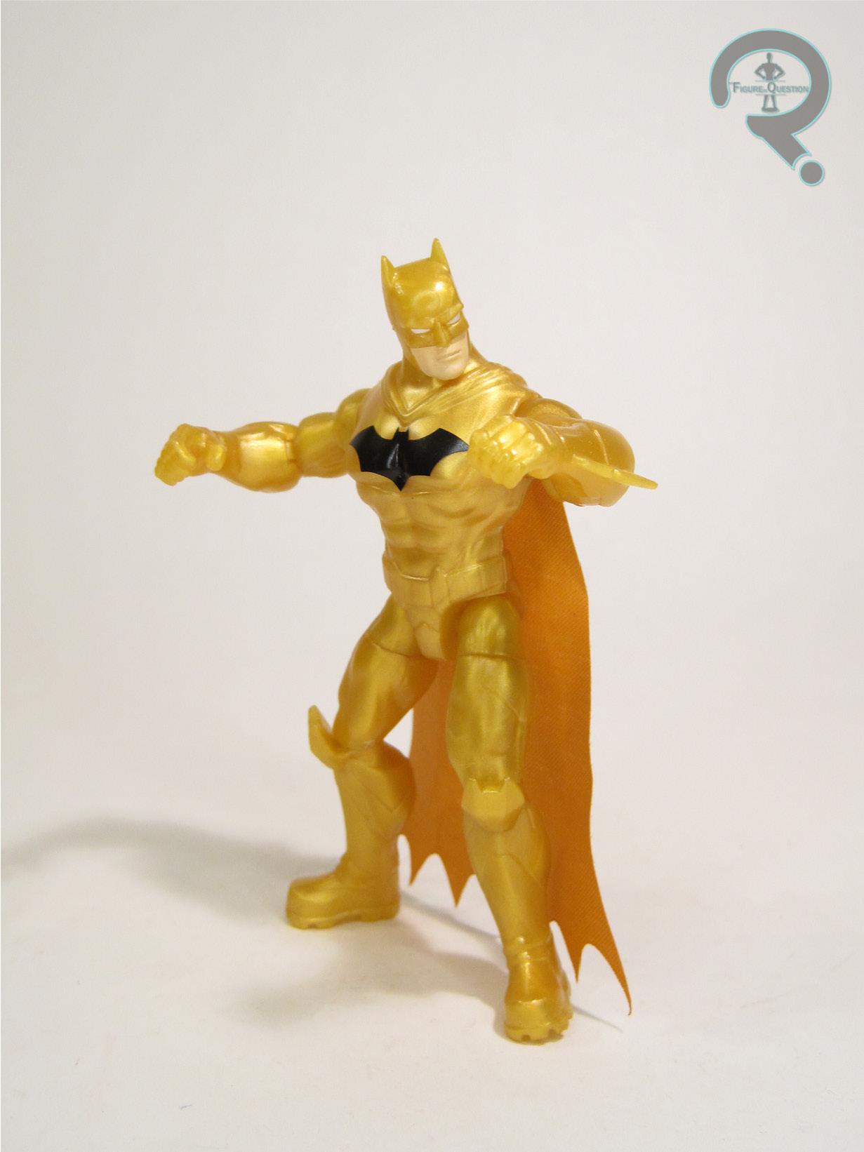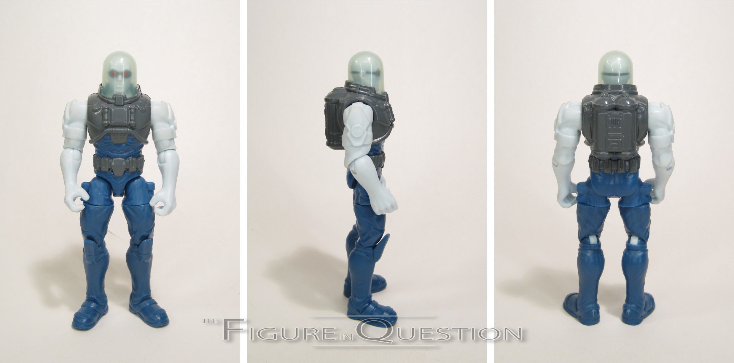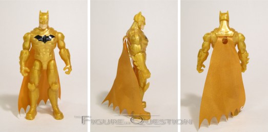 two prior armored Batman designs. This one’s definitely more streamlined, which fits well with the overall design. Like the other caped figures in the line so far, Batman’s is cloth. It seems to be a slightly sturdier material than prior capes, and generally hangs a little better than the slightly more paper-like material from previous releases. He’s still got the hole in it, to keep with the line’s overall playability set-up. Batman’s paint work is pretty basic and straight forward, but also his strongest asset. It’s quite eye catching, and the application is generally pretty clean, without any notable slop or bleed over. Batman’s blind packed accessories consist of a winged back pack, an oversized batarang, and what looks to be a grenade launcher of some sort. Mine are all in a clear blue; I don’t know if they have varied potential colors like prior releases, but the all blue certainly works for me; it looks kind of like they’re hard light constructs or something.