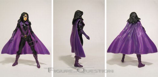 odd angle. Like, not quite v-hip, but not straight t-hip. So, it’s really just the arms that do anything. That all said, her sculpt’s honestly one of the better ones from the line. Her pose isn’t anything too crazy, she’s surprisingly stable on her feet, and her face lacks the weird intensity of most of the others. Her cape is also pretty basic, with enough flow to prevent it from looking too stiff, but not anything that looks *too* crazy. Huntress’s Total Justice color scheme went for the comic style shading, giving her a purple and blue outfit. For the JLA release, that was translated to purple and black, which definitely looks a little bit sharper. Her TJ figure got a crossbow and fractal armor (which are both missing from my figure), while the JLA figure got the crossbow, a purple display stand, and a backer with JLA #13 on it…which is interesting, because, in addition to the cover being just a close-up of Martian Manhunter’s face, Huntress is also just not in the issue. So, you know, there it is?