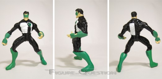 who’s got a pretty angry look about him. Presumably, he just found his girlfriend in the refrigerator. Shame. It’s a sculpt that I don’t think anyone can quantify as “good,” but it sure does do…something. Look, it’s very memorable. In terms of color scheme, Kyle’s original Total Justice figure was pretty subdued on his colors, with the greens a little on the darker side, the black more of a dark blue, and the white a sort of pearlescent shade. For JLA, which tended to aim darker, they actually punched it up a bit. The white and black are much starker, and the green is just a tad lighter. During Total Justice, GL got some of the line’s crazy Fractal Armor, but in his case it was done up in translucent green plastic, so it looks like a construct, which seems less silly. For JLA, he got a green stand and a backer with JLA #14 on it. He’s one of the three Leaguers on the cover, so it works well enough.