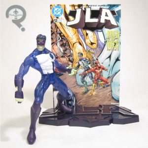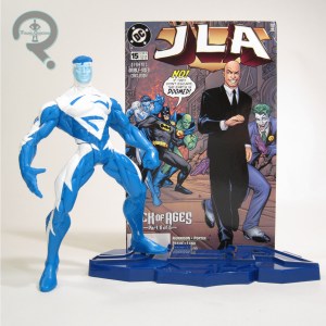 points of articulation. He is, unsurprisingly, the exact same construction as the Superman Red from the single-card releases, meaning he’s the Total Justice Superman sans cape, with the head of the Man of Steel line’s Hunter Prey Superman. It’s not a perfect set-up. In fact, it’s not a great set-up, since he still keeps all of the sculpted details for the standard Superman costume, as well as the totally different head gear set-up of the Hunter Prey design. They straight up just paint over it all and really hope you don’t notice. And, honestly, it’s fine. It’s not great, but it’s fine. The colors actually look really solid; like Red, Blue is bright and vibrant, and really pops off the shelf. I can definitely dig that. Superman Blue gets a blue JLA display stand, and a cardstock cover of JLA #15, which does at the very least actually feature him.
