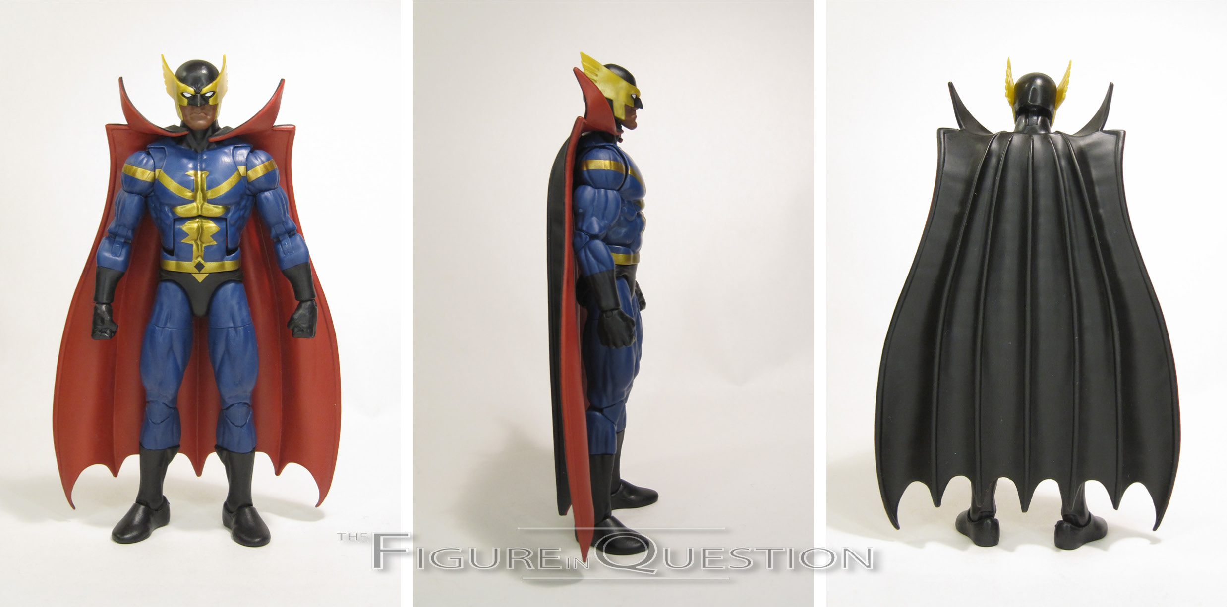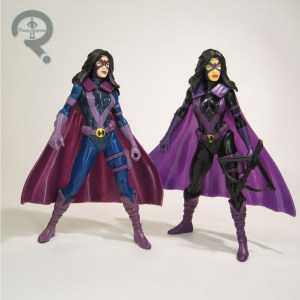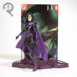 odd angle. Like, not quite v-hip, but not straight t-hip. So, it’s really just the arms that do anything. That all said, her sculpt’s honestly one of the better ones from the line. Her pose isn’t anything too crazy, she’s surprisingly stable on her feet, and her face lacks the weird intensity of most of the others. Her cape is also pretty basic, with enough flow to prevent it from looking too stiff, but not anything that looks *too* crazy. Huntress’s Total Justice color scheme went for the comic style shading, giving her a purple and blue outfit. For the JLA release, that was translated to purple and black, which definitely looks a little bit sharper. Her TJ figure got a crossbow and fractal armor (which are both missing from my figure), while the JLA figure got the crossbow, a purple display stand, and a backer with JLA #13 on it…which is interesting, because, in addition to the cover being just a close-up of Martian Manhunter’s face, Huntress is also just not in the issue. So, you know, there it is?