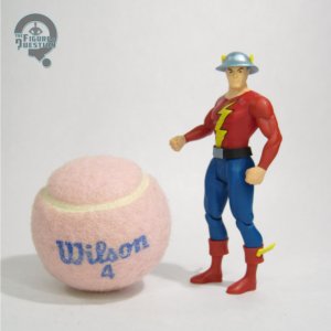 Exclusive to these sets were the Hologram JLA, based on the purple-hued JLA avatars that the Injustice Gang used during the first issue of the “Rock of Ages” storyline. They were a pretty straight forward gimmicky re-paint using the existing TJ molds of the JLA members. This set got Batman and Flash, whose standards were included in the other set. Both figures are just shy