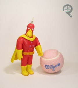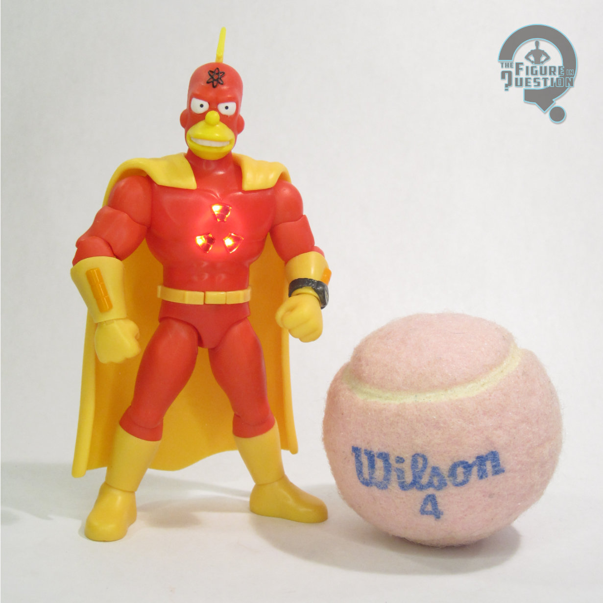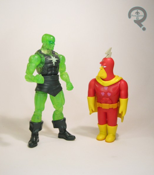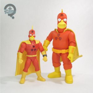 Radioactive Man is one of the three Deluxe figures kicking off that portion of JAKKS’ The Simpsons line, alongside variants of Mr. Burns and Homer. The figure stands just over 5 inches tall and he has 21 points of articulation. In terms of scaling, they’re not too terribly far off from Playmates’ stuff, but they’re a little different stylistically, so they don’t quite vibe. The articulation lands somewhere between Playmates and Super 7. He’s got a better spread then the very barebones Playmates figures, of course, but not the same range as the Super 7 figures. There are some very definitely limitations when posing this guy, with the