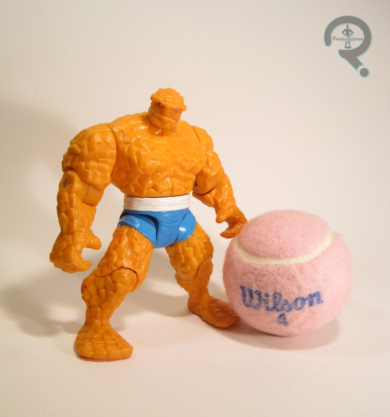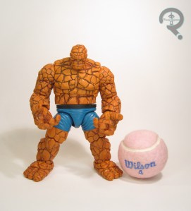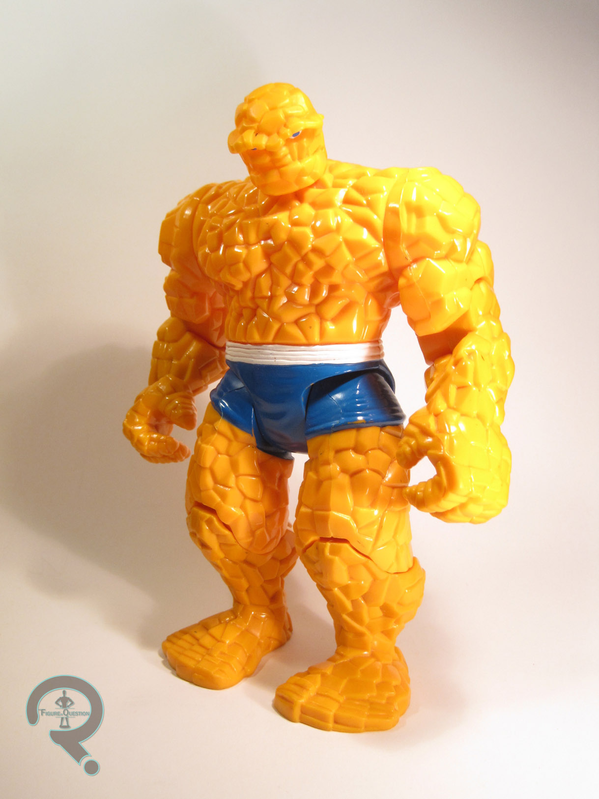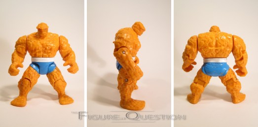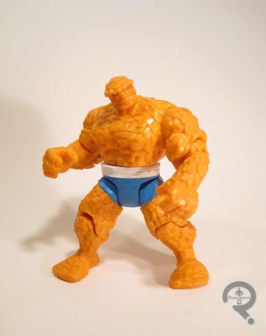 Yes, for the second FF set, we got yet another version of The Thing. This time around, he’s wearing one of his more extensive FF uniforms, with the tank top and boots that Byrne outfitted him with during his run on the book. Honestly, I’ve always loved this look myself, so I can’t really complain that much. The figure stands 2 1/4 inches tall and has 14 points of articulation. Ben’s built on the standard ‘mate body, but wait, what’s that I spy? Would those be C3-style feet? Indeed they would. Though they wouldn’t make it into the main line until the beginning of the next year, 2004’s summer/fall exclusive packs were all given the C3 treatment, a first for the Marvel line. He’s got add-ons for his head piece and fists, which, like the prior release, help to bulk him up just a touch, while still keeping him more true to the core body than later versions. While the head piece remains the same as the prior release, the hands are actually new, and actually do the reverse posing of the prior release: right is gripping, left is closed. It’s a small touch, but still a cool one. The paint work is a fair bit changed up for this release, adding the necessary details for his uniform, as well as some actual musculature for his torso, which works very well. Additionally, his facial expression is changed to a close mouthed one, which really appeals to me and my desire to have more close mouthed Thing figures. The face is seated slightly better on the face this time as well, so it works even better with the head piece this time. Thing included a small cigar accessory originally, but mine hasn’t had one as long as it’s been in my possession.