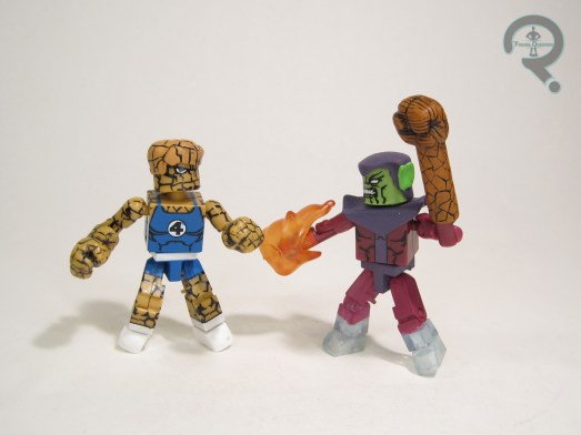 Clobberin’ Time Thing and Super Skrull were a Tower Records-exclusive pack, added to the Marvel Minimates line in October of 2004. They were Tower’s second exclusive for the line, following 2003’s single-release of Silver Surfer. Rather surprisingly for figures from this early in the line, these two remained wholly exclusive to this pack, though the pack itself was never incredibly hard to get a hold of or anything like that.