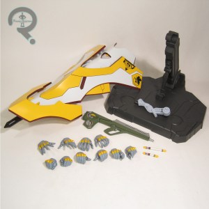 here is quite impressively handled. All the base work is very clean, and he’s also got panel lining to really help sell the sharpness of the sculpt. There’s also a ton of smaller printed details, which show a tremendous attention to detail. The Veritech is packed with four pairs of hands (weapon holding, flat, open gesture, and fists), a GU11 rifle, and a display stand. It also includes four sets of missiles, an antenna, and an alternate mount for the base, all meant to work with the figure’s alternate modes.
