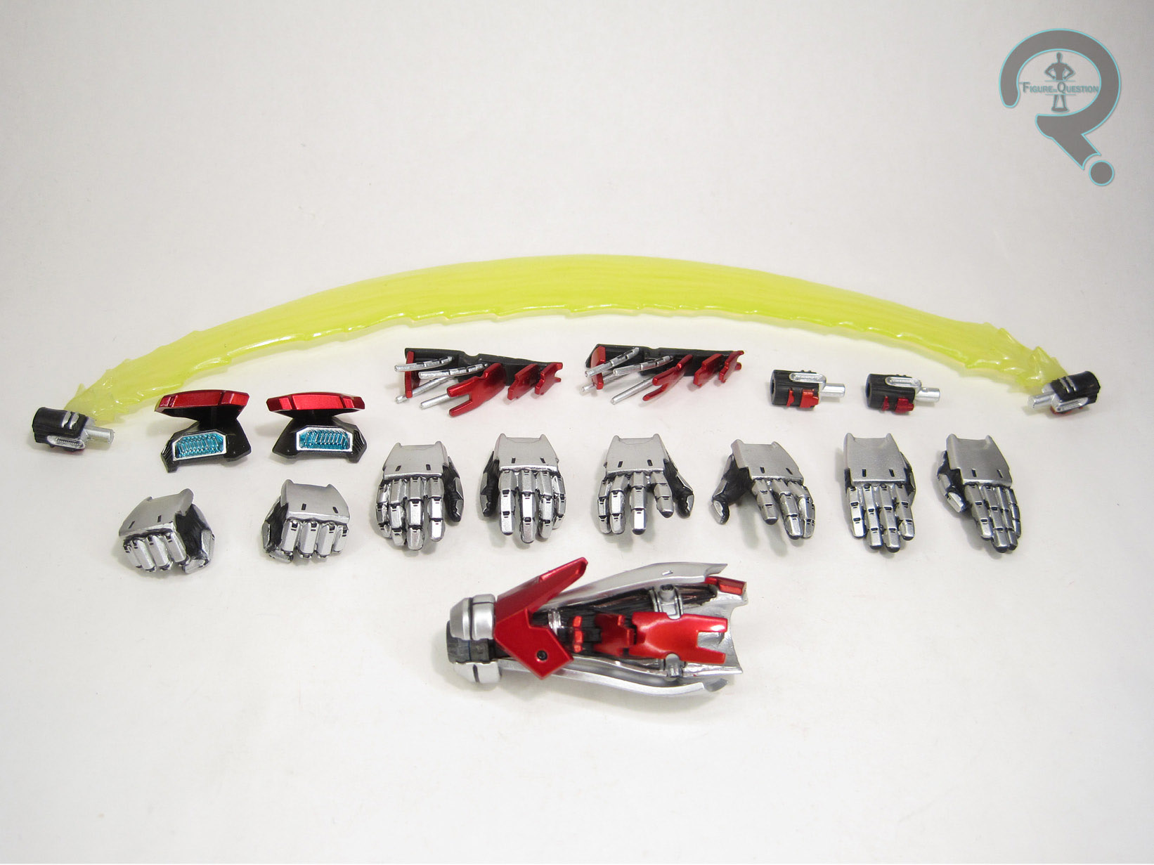 here is quite impressively handled. All the base work is very clean, and he’s also got panel lining to really help sell the sharpness of the sculpt. There’s also a ton of smaller printed details, which show a tremendous attention to detail. The Veritech is packed with four pairs of hands (weapon holding, flat, open gesture, and fists), a GU11 rifle, and a display stand. It also includes four sets of missiles, an antenna, and an alternate mount for the base, all meant to work with the figure’s alternate modes.