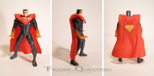 Eradicator was offered by ToyFare magazine as a mail-away offer, extending Kenner’s Man of Steel line by one figure. He’s based on Eradicator’s design from the “Reign of the Supermen” arc, which was, at the time of this figure’s release, the character’s only design. The figure stands about 5 inches tall and he has 5 points of articulation. His sculpt was unique to him, and is a pretty decent recreation of Eradicator’s page bound counterpart. He’s a little more pre-posed than the earlier Man of Steel figures, showcasing Kenner’s steady move into the Total Justice style of pre-posed figures. Eradicator is at least not ridiculously pre-posed; the slight upturn of the arms at the elbows makes sense for his energy-based powers, and the slight step in his legs helps to keep him balanced with the slightly heavy cape piece. The head sculpt has a rather intense expression, which was fairly in character for Eradicator, and offered a nice change from the standard Superman sculpts. The hands on the figure do seem a little on the large side, but perhaps it’t just the pose throwing things off. His cape is a removable piece, which plugs into place. It’s a little on the bulky side, but not terribly so. Underneath is a fully detailed sculpt, which actually has a pretty nifty light-piped feature where the usual logo would be. Eradicator’s paintwork is pretty decent; the application is mostly clean and sharp. The contrast could maybe bee a little higher on the blue sections of the costume, but the metallic sheen is still pretty cool. Also pretty cool? The translucent feature on his arms. That’s a lot of fun.