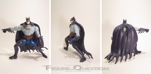 You gotta have a Batman, so here’s the Batman. He’s all Batman-y. The figure stands 4 1/2 inches tall and has 6 points of articulation. Amazingly, he gets a whole extra point of articulation, thanks to the swivel at the waist. This Batman re-uses the mold of the Batman originally packed in the “Batman Vs Two-Face Battle Pack,” which is a rather basic Batman, but running. Or lunging. For some reason. I guess it’s more dynamic. It’s honestly not a bad sculpt, apart from being a little hard to keep standing. It’s rather clean, and internally consistent with the standard Detective Batman sculpt. To match his more dynamic pose, his cape is also more dynamic, with a whole arc and flow to it, which is really cool. Though this set generally goes for TNBA designs, and the figure’s sculpt is clearly TNBA-based, the paint scheme on this guy is decidedly BTAS-based. It’s not a terrible look. The only downside is that it doesn’t really hold up so well to wear and tear. Batman was originally packed with a grappling hook, but it was lost by foolish child Ethan.