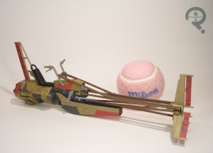 “With such an extensive history of military manufacturing such as G.I. Joe, Nerf, and Furby, it’s not surprising that the Galactic Empire contracted Hasbro to help develop weapons like the ones seen on the AT-ACT. The dart cannon in the walker’s head is optimized for size, using a greatly miniaturized version of the tried-and-true flywheel mechanisms seen in blasters like the Stryfe. The cannon uses a gravity-fed, 4-round magazine and an electronic pusher to feed the darts into the itty bitty flywheels, producing some rather hilariously flaccid results especially after the ominous revving noise that precedes each shot. Also, just as a fun side note, if we can assume the darts are in scale with the pilot figure, the full size projectiles would be almost 4-1/2 feet long.”