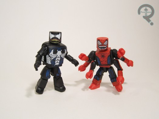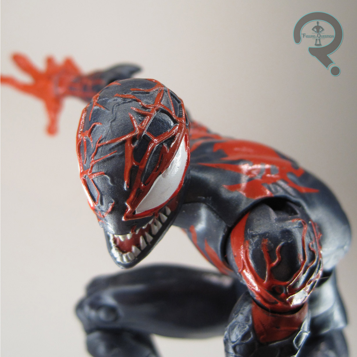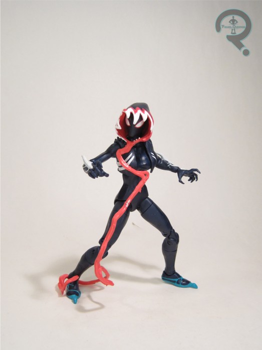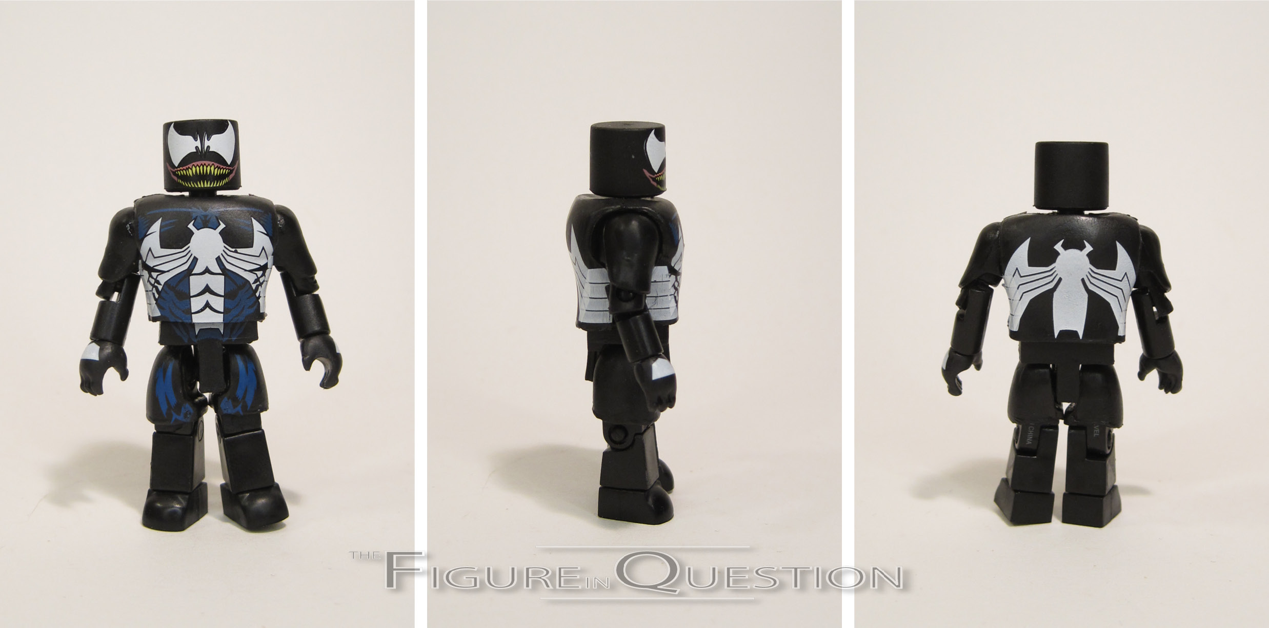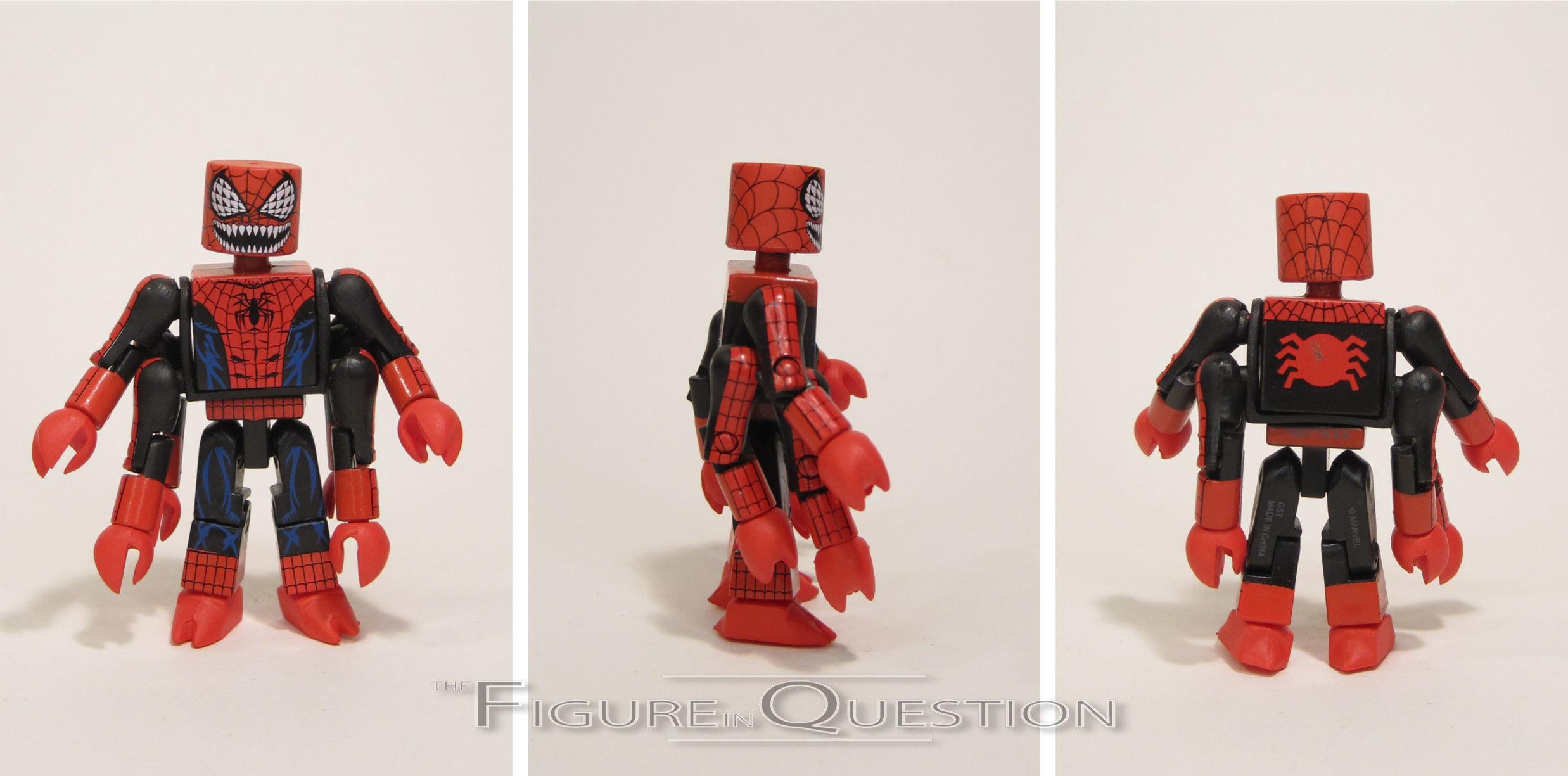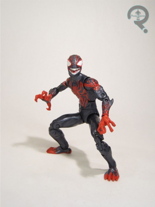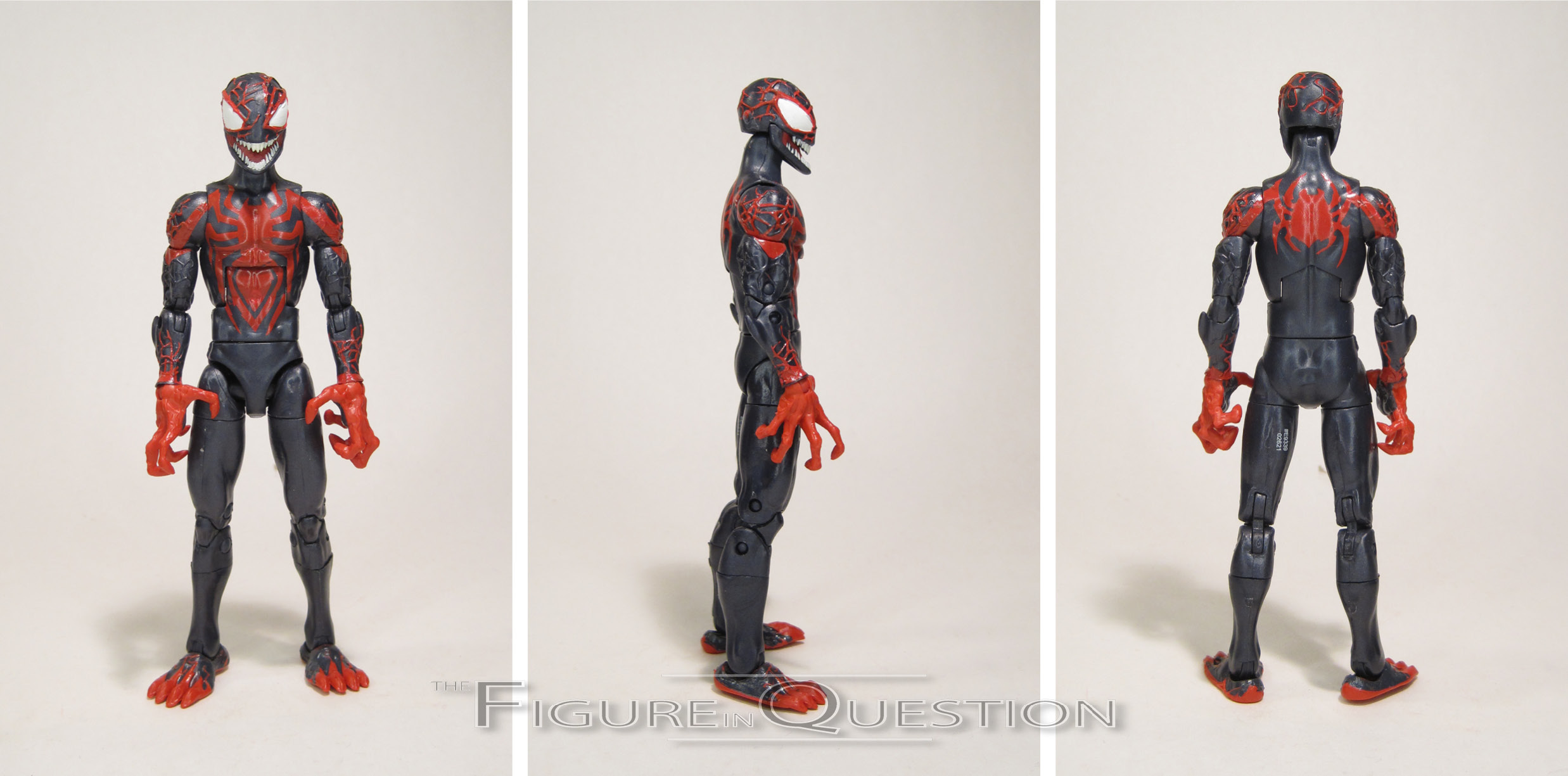 feel very much in line with his game design. I especially like the partially unmasked head, because it reminds me of the old Spider-Man Classics figure. In terms of coloring, he is, as noted above, blue. It’s honestly a pretty good way of getting him to stand out from the others. Generally, the paint’s pretty basic. I do really love the green saliva on the tongue, though. Venom is packed with the alternate unmasked head, and two pairs of hands.