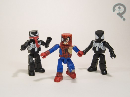 Damaged Spider-Man and Venom were released in Series 2 of Marvel Minimates as one of the standard sets, with the one-per-case Black Spider-Man swapping out for Damaged in each case. Both Damaged Spidey and Venom would also see release as singles and in the TRU boxed sets as well, but this would remain the only way to get this specific Black Spidey.