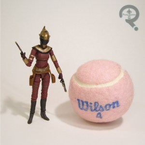 See? That wasn’t so hard! Chubbray is about 2 ¾ inches in height and he features 14 points of articulation. While that’s certainly more articulation than most previous Ewoks, the lack of elbows and knees do make the figure a little stiff. I don’t have an expert on the previous Ewok figures, so I don’t know if any pieces are shared here. Regardless, the sculpt is nicely done. It looks like the creatures from the movie, and there’s some very nice detail work on the fur and the head covering. About the only downside of the sculpt is that the joints are really visible. Chubbray’s paintwork is generally pretty clean, though, to be fair, it’s not the most complex paintjob of all time. Still, it’s all well applied and all the colors are well chosen. Chubbray includes a spear, which is probably just a normal spear, but I’m going to pretend it’s some sort of an energy spear that’s powered by some minutely scaled generator that Chubbray built himself. I mean, the greatest Ewok warrior that ever lived has to have a top-notch weapon, right?