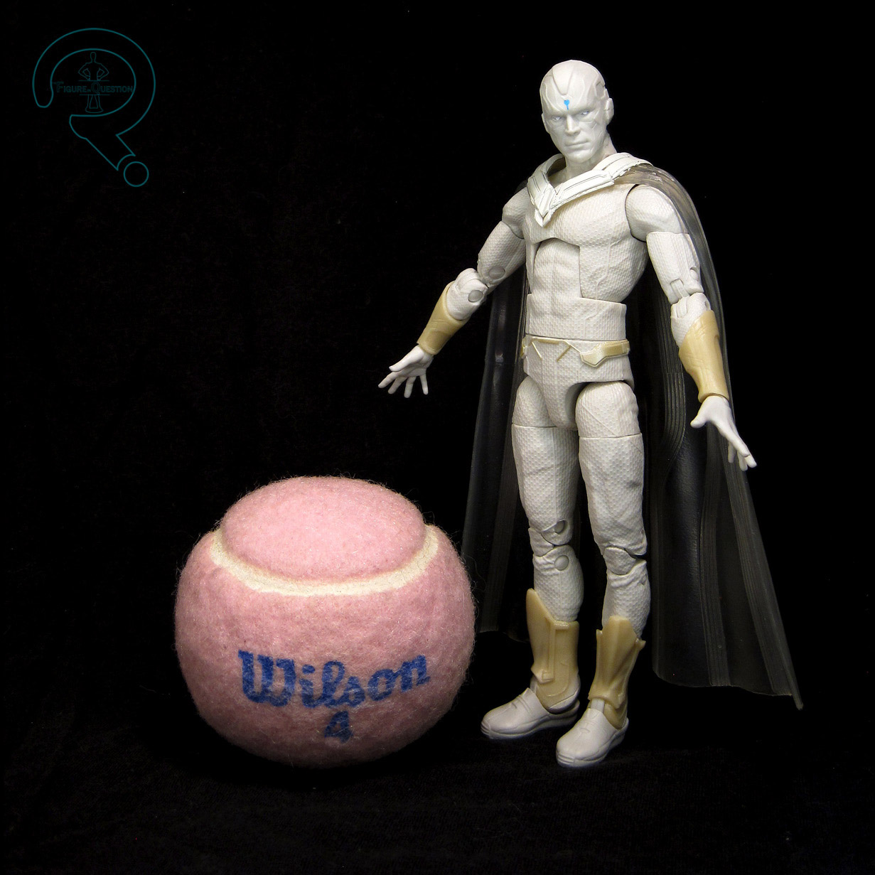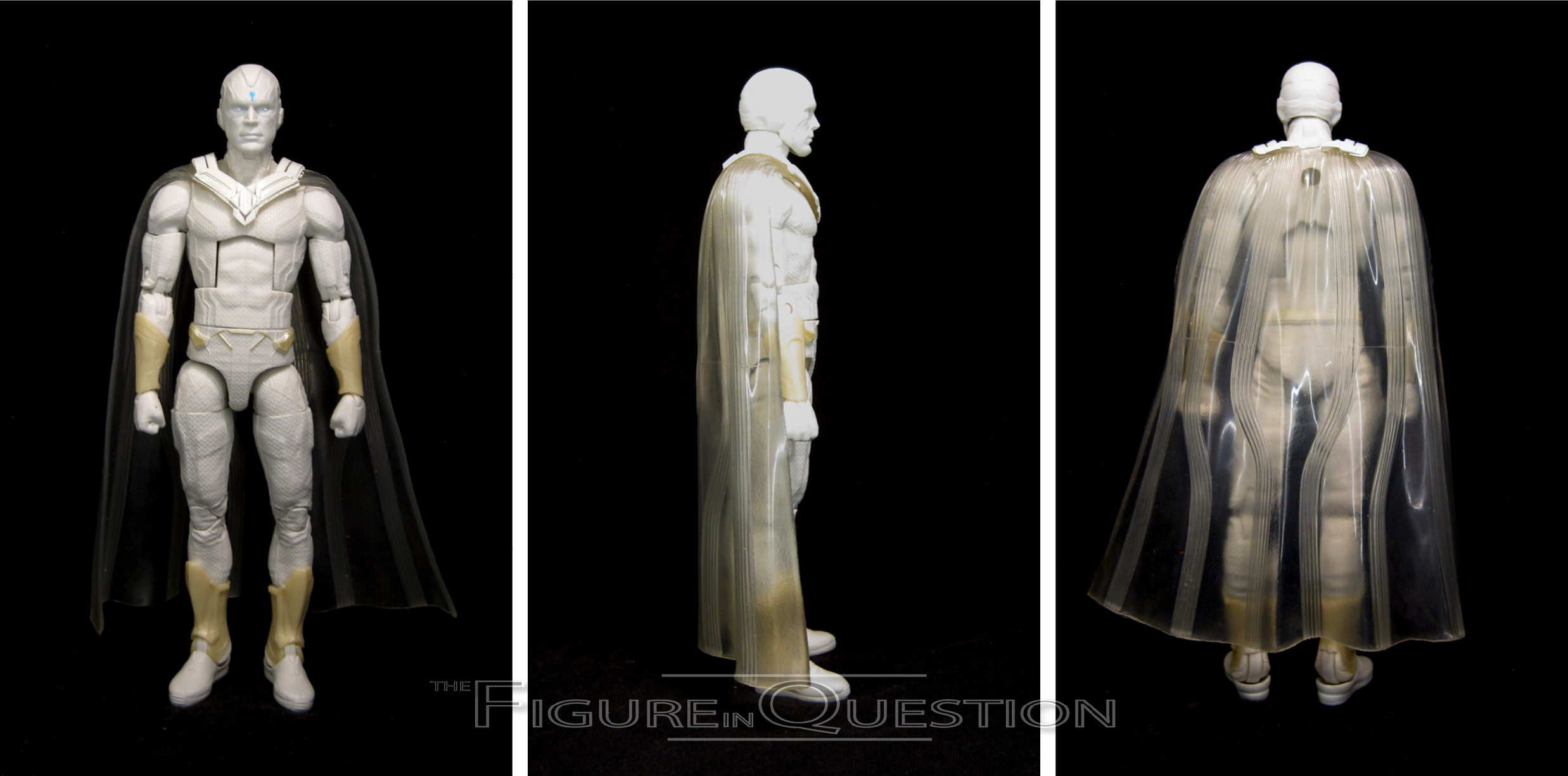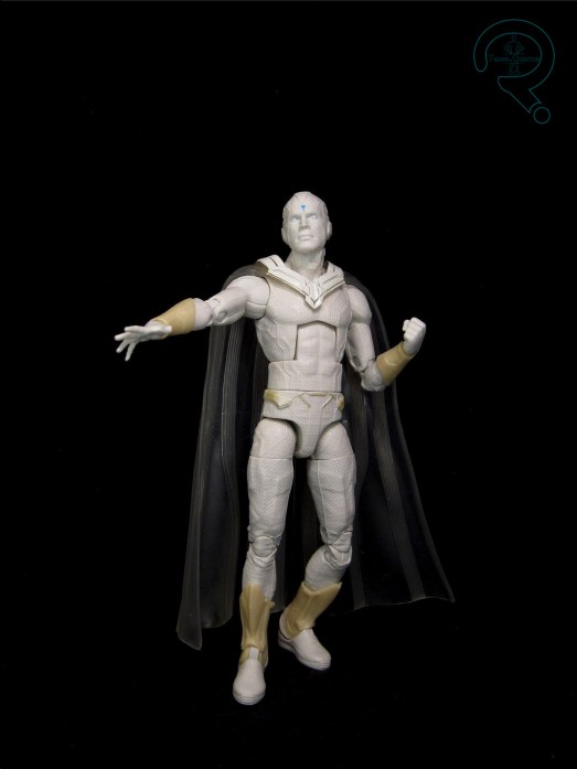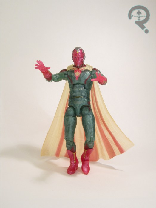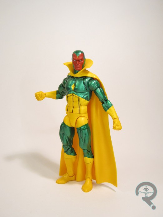 Vision is Figure 4 in the Void Series of Marvel Legends. He’s a proper classic Vision, which makes fourth appearance in Legends here, and its third under Hasbro. The figure stands 6 1/2 inches tall and he has 34 points of articulation. Vision is built on the Vulcan body. The Vulcan is serving as the replacement for the Bucky Cap, and all but one of the “modern” comic Visions was on the Bucky Cap, so the move makes a degree of sense. Vulcan’s a little bigger than the Bucky Cap, which, for me, actually makes it work a bit better for Vision than the Bucky Cap did, and certainly better than the 2099 did for the first Retro card version. The last couple of Visions have all used the same head sculpt as the Hulkbuster Series Vision. That was passable, but not the strongest, and I felt it never lived up to the strengths of the Toy Biz version. This release gets a new head sculpt, courtesy of Paul Harding, which is based on Harding’s “Marvel in the 70s” series of sculptures. It’s a very strong one, and I feel a worthy successor to the Toy Biz sculpt. It’s certainly my favorite of the Hasbro Legends