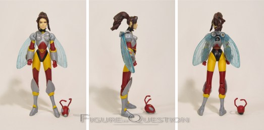 The real star here is Wasp, who isn’t a stranger to Legends, but isn’t as frequent with *good* ones. Also, this particular look, which is her original one, has only been offered as little mini figures previously, and never as a full-scale figure of her own. The figure stands just over 6 inches tall and she has 34 points of articulation, plus a moving head-set piece. Wasp re-uses the pinless double jointed arms and legs from Shriek, since they’re pretty basic. The head, torso, skirt, and forearms are new, and they’re quite nicely handled. I was especially impressed with the head sculpt, which manages to translate her pointy-headgear without it looking too silly, and I really like the moving head-set piece. She’s re-using the wings from the