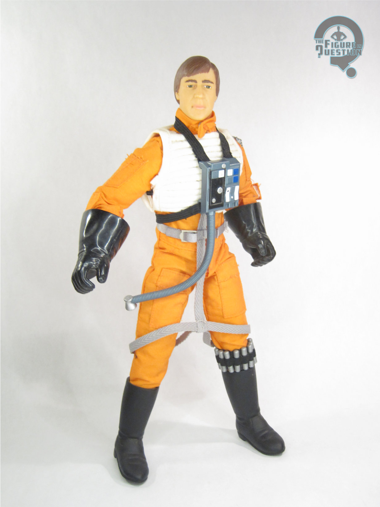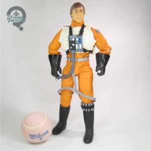 Wedge Antilles was released in 1998 as part of Kenner’s Star Wars: Action Collection, which served as the 12-inch scale component of the Power of the Force run. He was sold in a two-pack with fellow X-Wing pilot Biggs Darklighter, which was exclusive to FAO Schwarz. He’s based on his look from A New Hope, hence the inclusion alongside Biggs. The figure stands about 12 inches tall and he has 12 points of articulation, as well as those kind of pointless ratchet joints on his knees. He’s got sort of a combination of a couple of the bodies Kenner used for Action Collection. He has the improved upper torso with the waist and elbow joints, but lacks the proper articulated legs that some of the later single release figures got. It means he can sort of pose, but not a lot. He got a new head sculpt, which looks as much like Dennis Lawson as any of the ‘90s 12-inch figures looked like their respective actors, so it’s at least consistent with the other stuff. You can generally tell who it’s meant to be, even if it is perhaps a bit soft. His outfit, which was entirely shared with Biggs, consists of a jumpsuit, vest, web gear, boots, and gloves. The boots, gloves, and web gear are sculpted elements, and generally look alright, though the gloves are quite bulky around the wrists. The rest of it’s fabric, and it does alright. It’s very loose and thick, and kind of shapeless, but that’s what these figures looked like. Mine’s got some light staining on the back. At one point, he had a helmet, which was another sculpted piece, but mine lacks that. Paint is minor, and pretty much confined to the head. His hair’s light for Wedge, but that’s about it.
