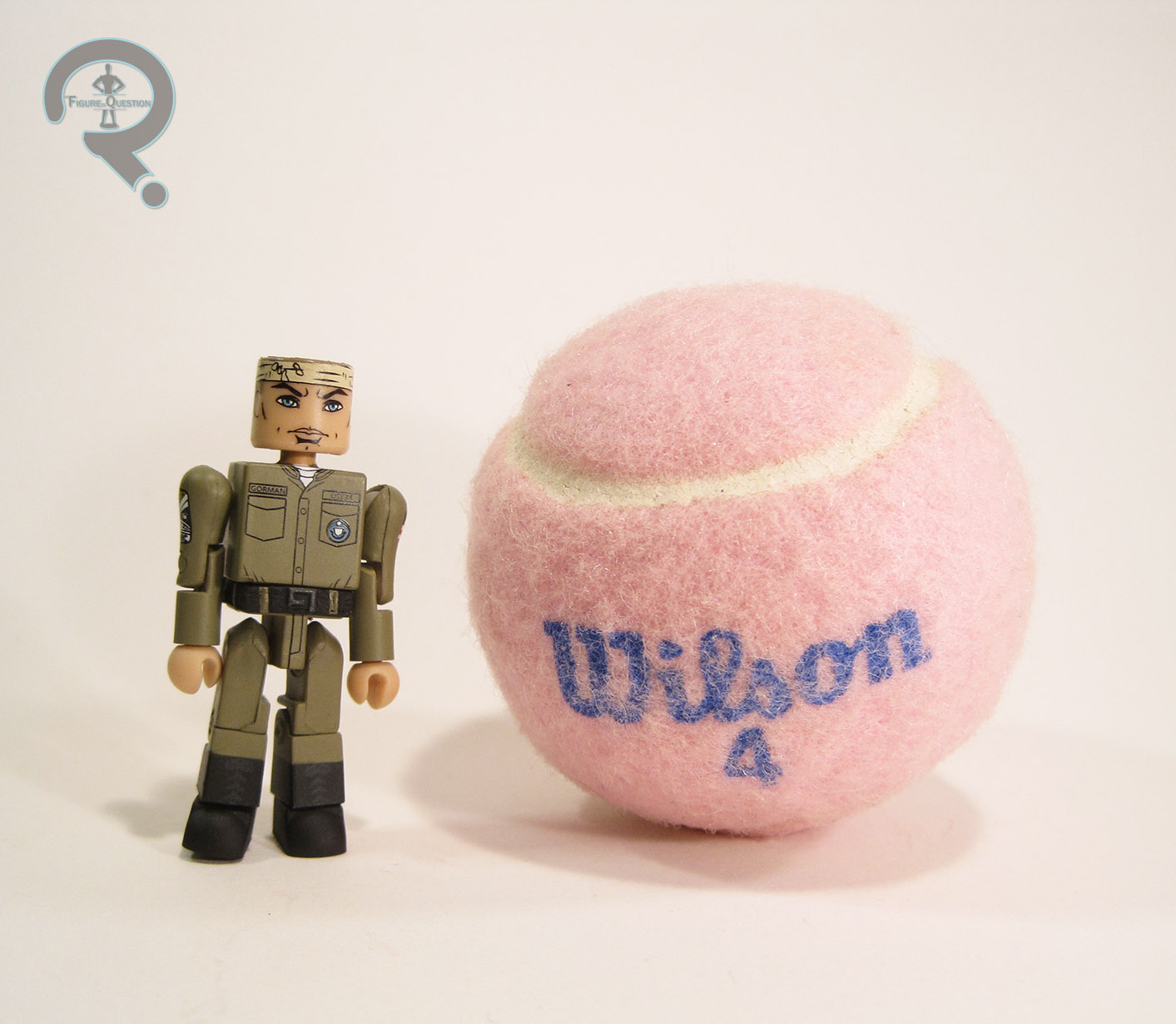 Included with the APC is Lt. William Gorman. Given that Gorman spends perhaps the most time in the APC of anyone in the movie, he’s a good choice. This is Gorman’s second time as a Minimate, with the first being as part of the third TRU-exclusive series. However, that figure was based on his briefly seen dress uniform, where as this one is based on his main fatigues look from the film. He stands 2 1/2 inches tall and has 14 points of articulation. Gorman uses the standard Minimate body, with add-ons for his hat and belt. Both of these pieces are re-used, but they fit very well for the character. The paintwork on Gorman is overall pretty solid; he’s on par with the rest of the line. The face is the same one seen on the TRU version, which is good for consistency. The patch on his shoulder still incorrectly reads “USMC” instead of “USCM,” but at this point, I guess they just want all the patches to match. More power to them. Gorman includes an extra head, sporting the bandage he’s got for the second half of the film, as well as a handgun, and a clear display stand. I wouldn’t have minded getting the jacket he has when they first arrive on LV-426, but I can’t say I’m disappointed by the selection at all.