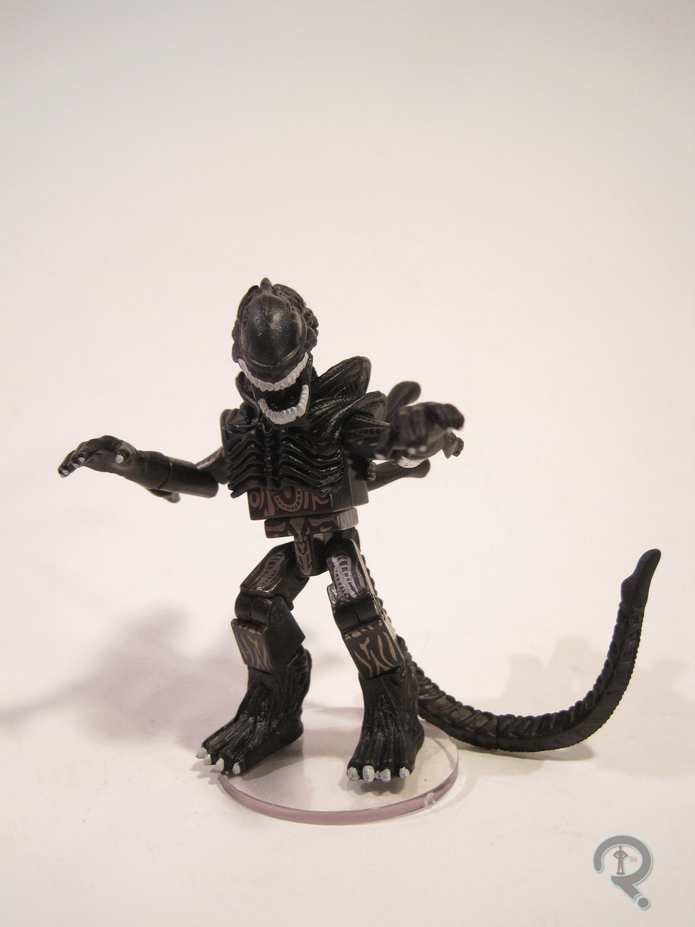 HudsonXeno5Well, I guess it wouldn’t really be an Aliens set without another Alien, right? So, here’s this one. But this time he has a new hat—err, I mean, he’s screaming! That’s sort of different. Different enough when you’re dealing with army builders, anyway. For the most part, this figure is more or less the same as the other Aliens. It has sculpted pieces for the head, torso, tail, hands, and feet. The pieces are as well sculpted as always, so that’s good. This figure uses the “attacking” head, but it lacks the inner mouth piece, giving it the screaming appearance hinted at in the name. The figure’s paint is pretty much identical to all the prior Warrior and Attacking Aliens the line’s offered. There’s plenty of painted texturing and such, which keeps the figure visually interesting.  As far as accessories go, the Screaming Alien only includes a clear display stand. However, this is totally on par with prior Aliens, and it’s totally reasonable, given how many sculpted parts the figure has.