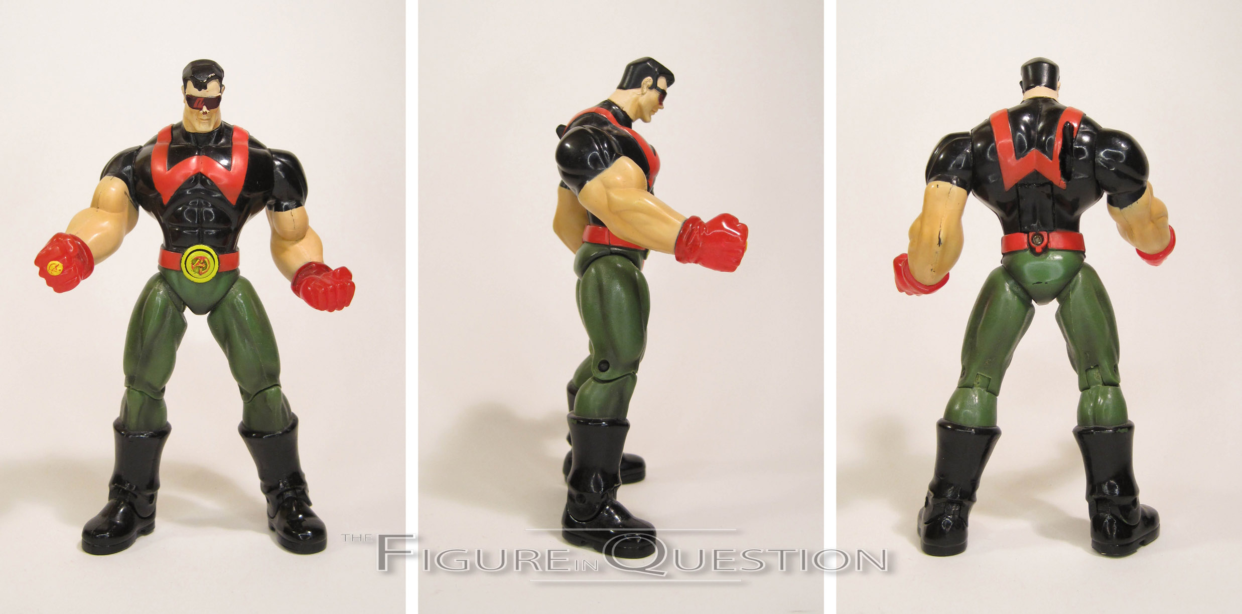 The Atomic Thunderbolt is a character I wasn’t familiar with prior to this. In essence, he’s kind of a half-step between Captain America and Captain Atom…which is interesting, because he actually predates Captain Atom. Anyway, William “Willy the Wharf Rat” Burns (yes, that’s really his name), a former merchant marine suffering from PTSD, is granted atomic powers in an experiment that results in the death of his creator, who took the secrets of atomic powered people with him in death. Fun times. Atomic Thunderbolt gets the bald head, as well as Madman’s wrist cuffs, which all in all replicates his comics look pretty well. Like Wonder Man, his paint is still a little wavy around some of the edges, but it’s generally cleaner than Series 2 was.