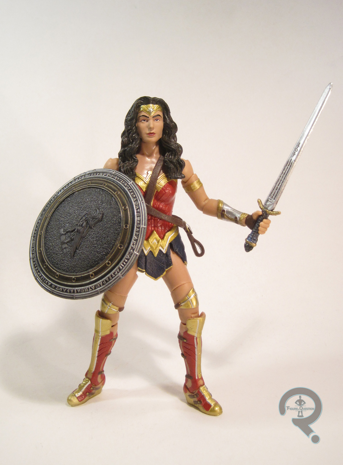 The paint on Wonder Woman is pretty good. Her paint job is a bit more intricate than GL, so there’s a bit more room for error. She suffers from some fuzzy lines on the edges of her boots and sleeves, but they aren’t too noticeable, and they’re certainly better than Hal. Her eyes have been given a red-ish hue, which almost makes it look like she’s been crying. Not sure what they were going for there, but it doesn’t seem to have worked. Also, her skin tone seems to be a bit light compared to what she had in the movie, which is a shame, because it added some nice diversity to the group. I suspect this was done so that they could use the same skin-tone plastic on all of the figures. Wonder Woman includes her lasso of truth, which is glued to her waist, and a sword, which seems oddly short.