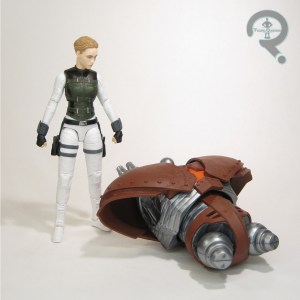 articulation. Her mobility is a little on the stiff side, but she does at least get the pinless joints. Also of note is just how hard it is to keep this figure standing, which is rather frustrating. She’s sporting an all-new sculpt, which looks rather accurate to the animation models, placing her on par with the figures from the last set in that regard. In terms of coloring, she’s again pretty well-matched to the show look. The paint application is a little sloppy on edges of hands but otherwise clean, and the colors certainly pop. Warrior Gamora is packed with her own version of Thanos’s double-bladed thing, as well as the left arm of Hydra Stomper, and an extra left hand.