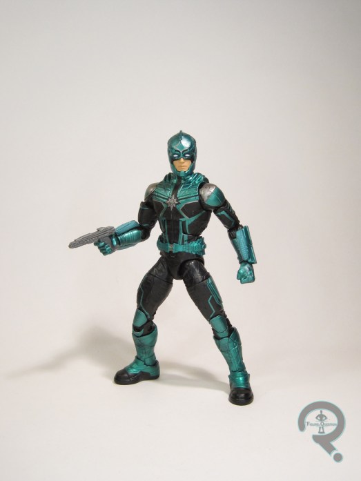Man, we were really itching to find out what Yon-Rogg’s big secret was before the movie came out. Turns out the big secret was that there was really no big secret, aside perhaps from this version of Yon-Rogg somehow ending up as less villainous than his comics counterpart. Honestly, though, it feels like they came up with the role for Law without knowing exactly which Kree officer he’d be playing, and eventually decided to tag him with Yon-Rogg’s name (the fact that said name is only spoken once in the film, said in a scene where his character isn’t even present kind of lends credence to this). Whatever the case, he’s a pretty prominent character, and obviously he was going to show up somewhere in this line. He makes use of add-on pieces for his hair, backpack, gloves, belt, and holster. The hair is reused from Venkman, but otherwise these pieces are new. At first glance, the holster looks the same as Korath’s, but it’s actually its mirror piece, correctly representing their placement in the film. Like Carol, Yon-Rogg also includes an alternate helmet piece, should you want him fully armed up. But, given how briefly he wears it in the movie, I don’t see it getting much use from me. Yon-Rogg’s paint is pretty involved, and matches up with Carol and Bron-Charr (but not with Korath and Ronan). The face has a pretty solid likeness of Jude Law, which is certainly refreshing after the Legends figure. Yon-Rogg is packed with a pistol, an effect piece for his weird gauntlet thing, and a clear display stand.