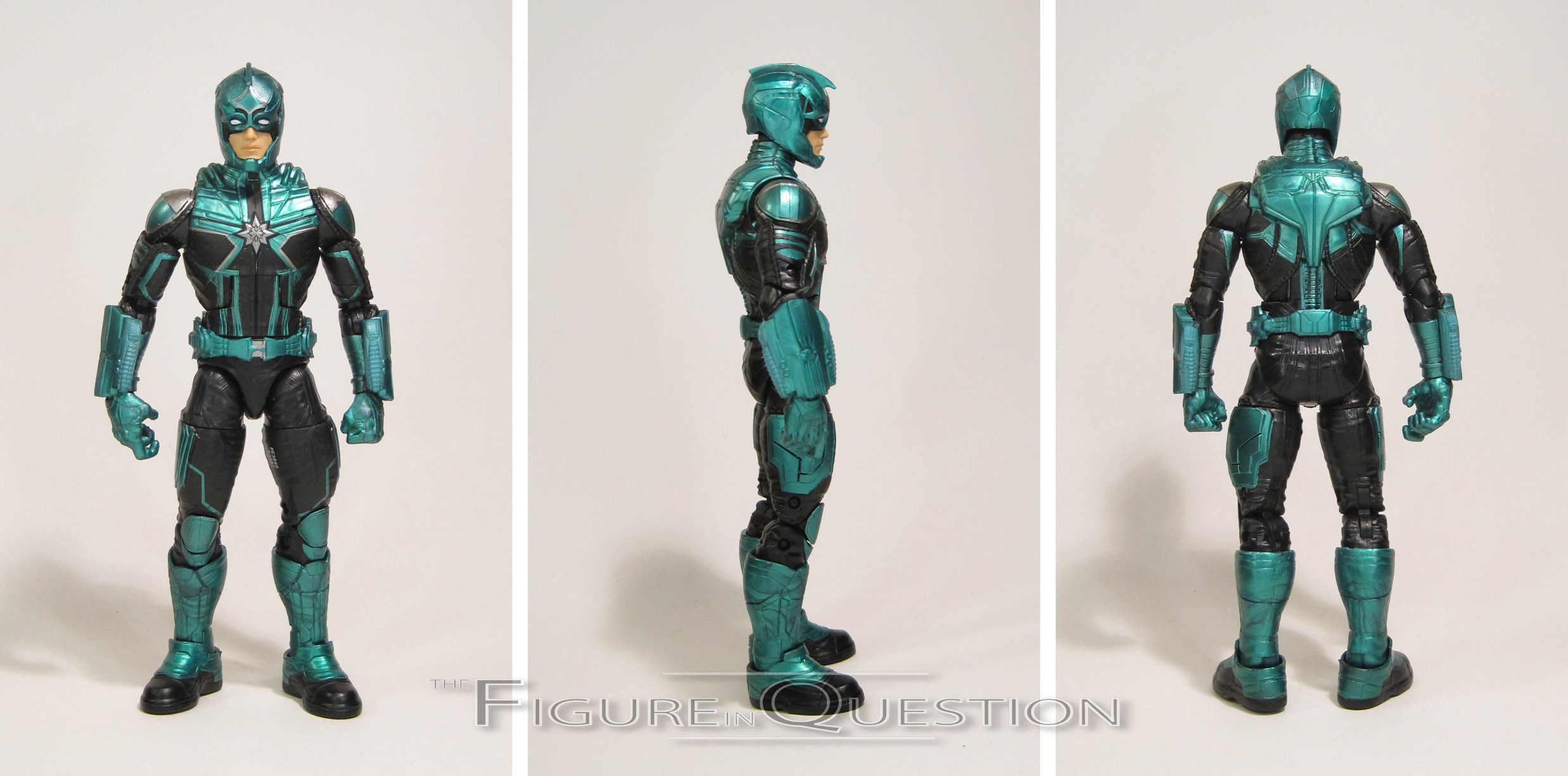 Man, we were really itching to find out what Yon-Rogg’s big secret was before the movie came out. Turns out the big secret was that there was really no big secret, aside perhaps from this version of Yon-Rogg somehow ending up as less villainous than his comics counterpart. Honestly, though, it feels like they came up with the role for Law without knowing exactly which Kree officer he’d be playing, and eventually decided to tag him with Yon-Rogg’s name (the fact that said name is only spoken once in the film, said in a scene where his character isn’t even present kind of lends credence to this). Whatever the case, he’s a pretty prominent character, and obviously he was going to show up somewhere in this line. He makes use of add-on pieces for his hair, backpack, gloves, belt, and holster. The hair is reused from Venkman, but otherwise these pieces are new. At first glance, the holster looks the same as Korath’s, but it’s actually its mirror piece, correctly representing their placement in the film. Like Carol, Yon-Rogg also includes an alternate helmet piece, should you want him fully armed up. But, given how briefly he wears it in the movie, I don’t see it getting much use from me. Yon-Rogg’s paint is pretty involved, and matches up with Carol and Bron-Charr (but not with Korath and Ronan). The face has a pretty solid likeness of Jude Law, which is certainly refreshing after the Legends figure. Yon-Rogg is packed with a pistol, an effect piece for his weird gauntlet thing, and a clear display stand.